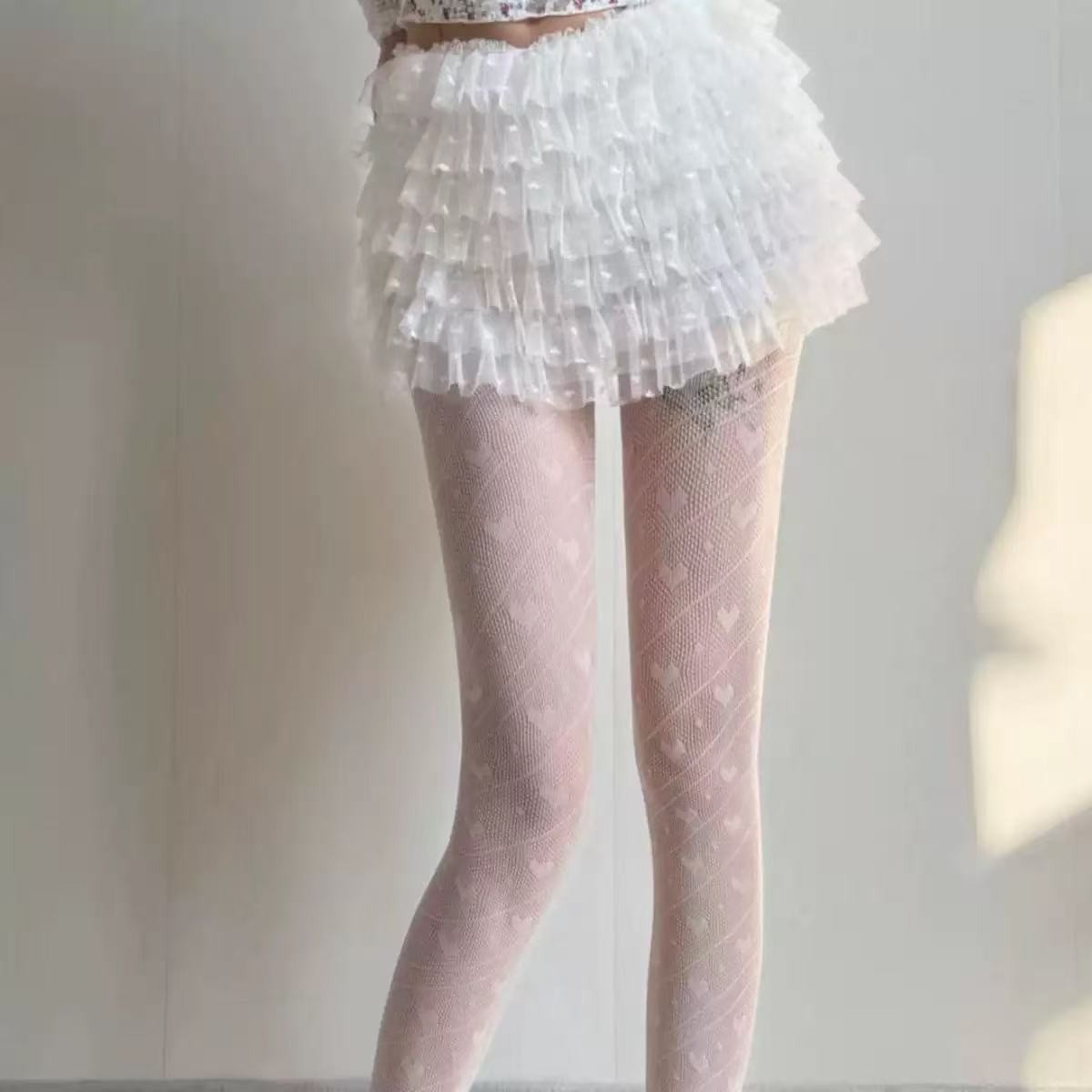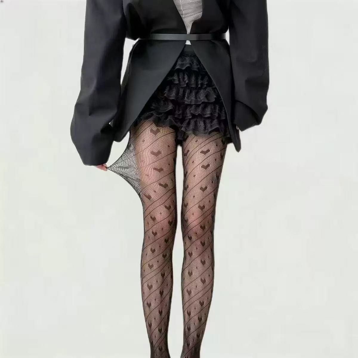 Sexy Mesh Stockings With Hollowed Out Ultra-thin Heart-shaped Printed Pantyhose