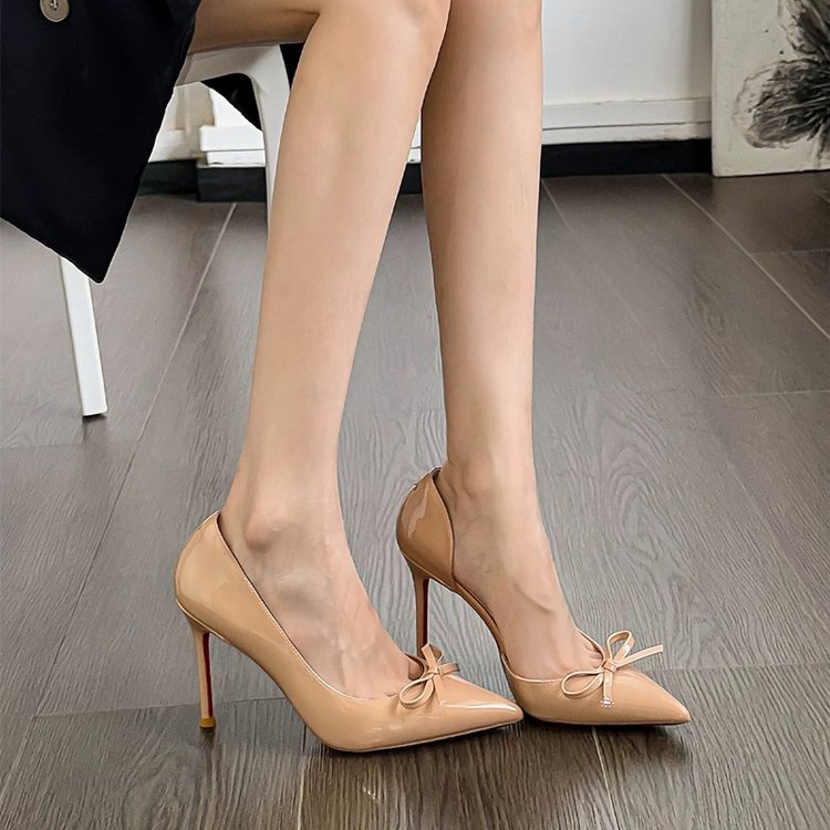 Sexy Pointed Thin Heel High-heeled Shoes For Women, Versatile Bow Tie Single Shoes