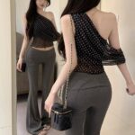 Sexy Retro Pure Desire Wave Print Mesh Short-Sleeve Top