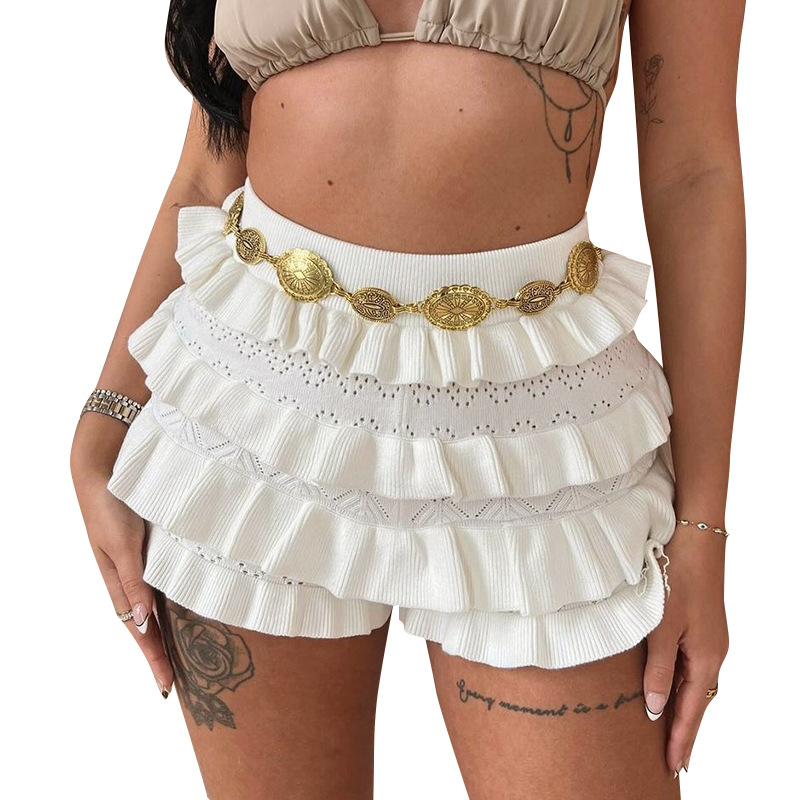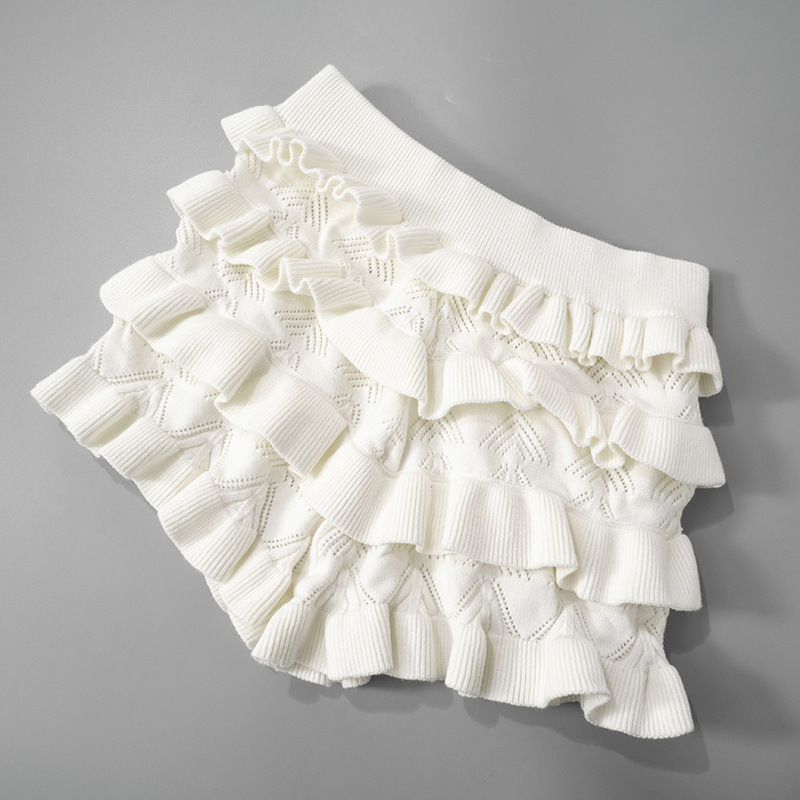 Sexy Solid-Colored High-Waisted Knitted Multi-Layer Ruffle-Trimmed Shorts is designed for style, comfort, and everyday use.