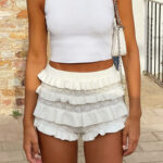 Be the first to review “Sexy Solid-Colored High-Waisted Knitted Multi-Layer Ruffle-Trimmed Shorts”