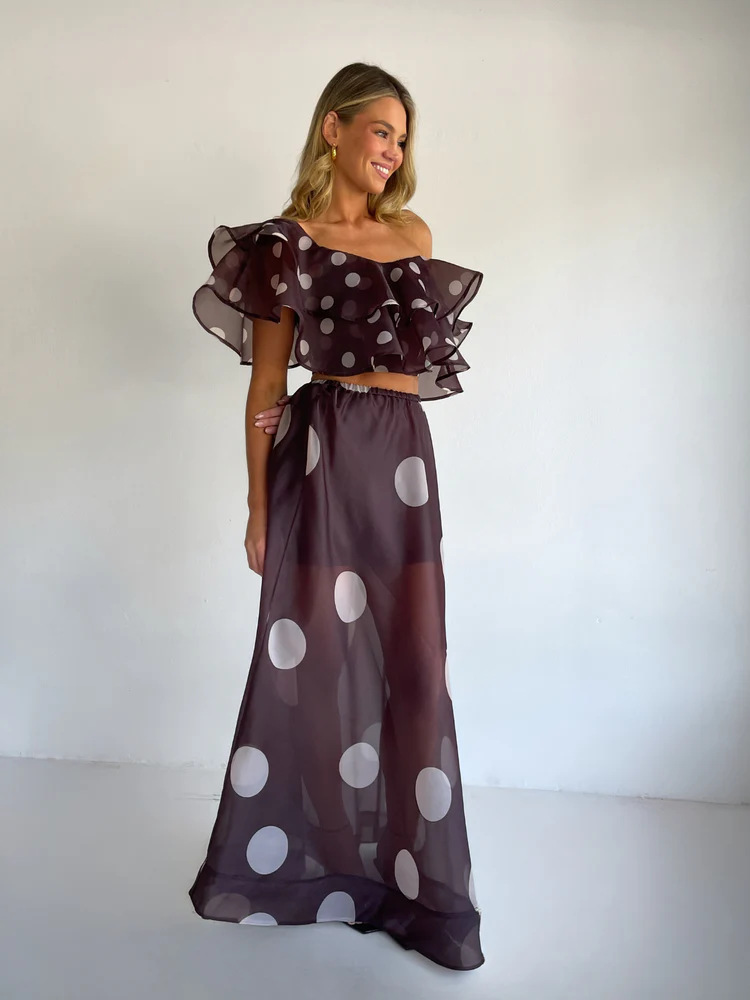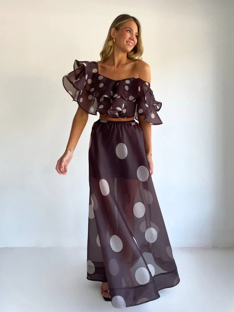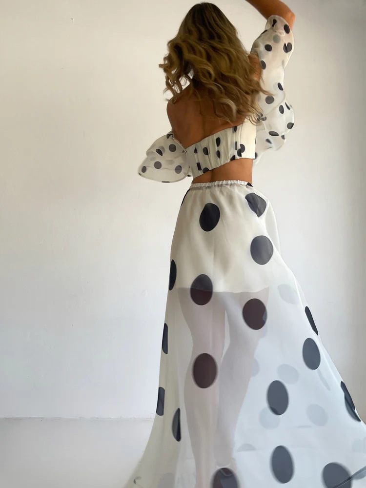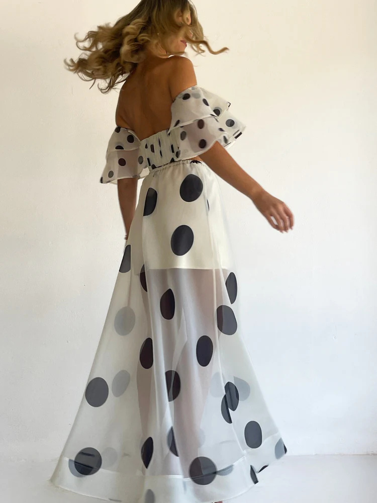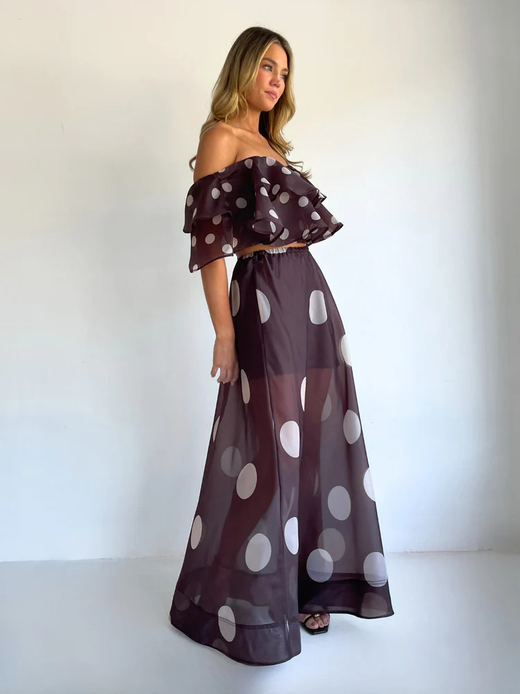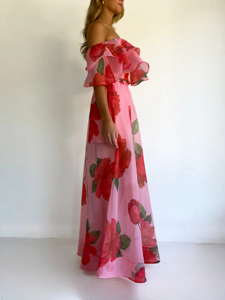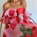 Sexy Strapless Irregular Print Ruffled Fashion Suit Long Dress