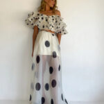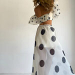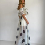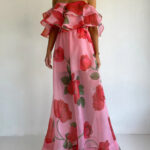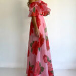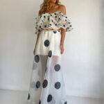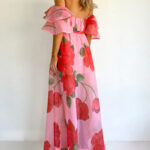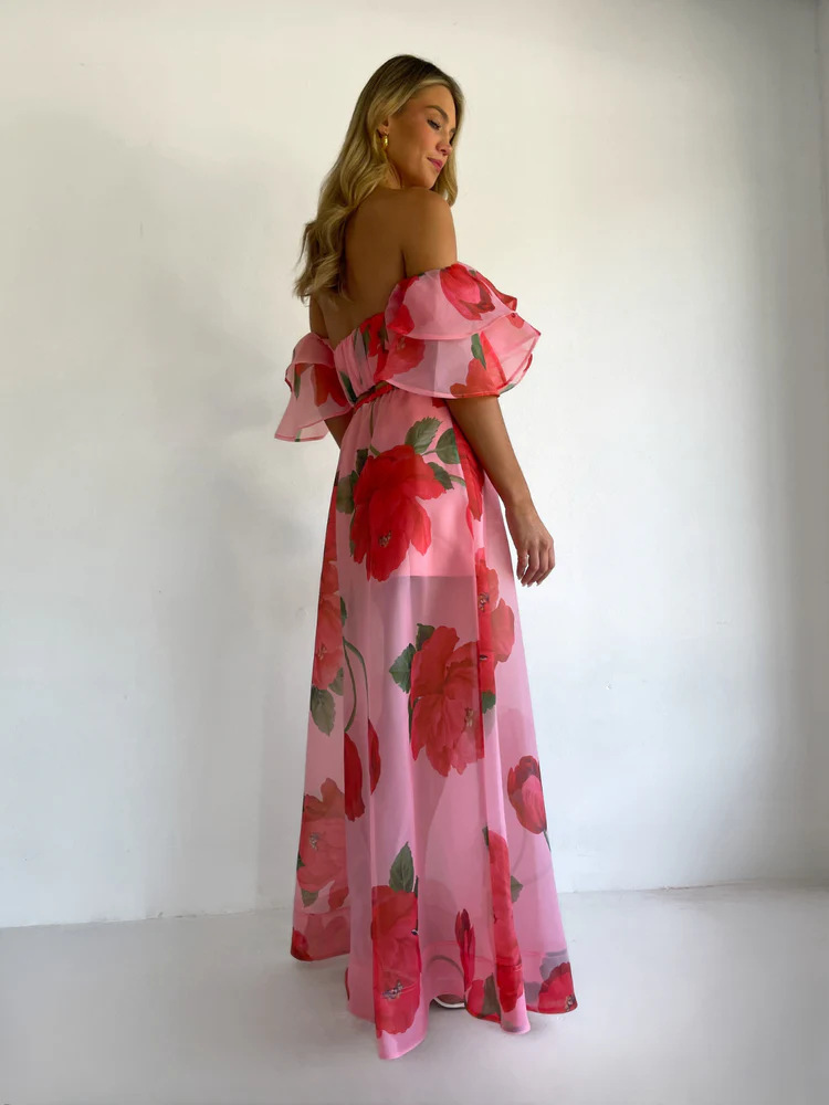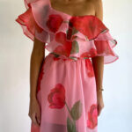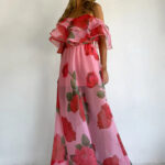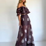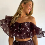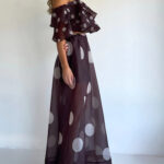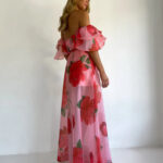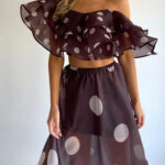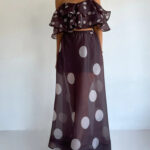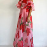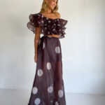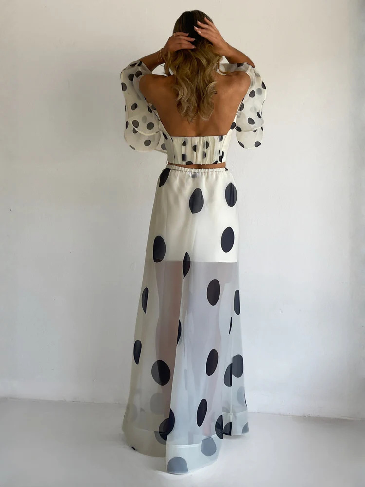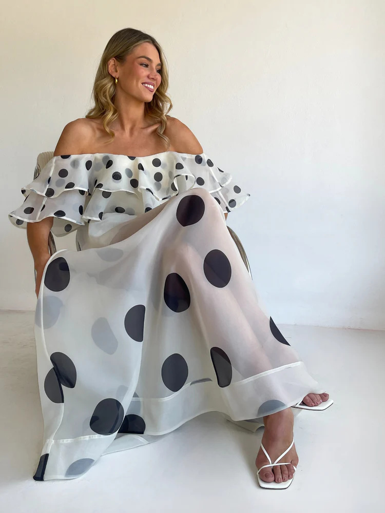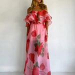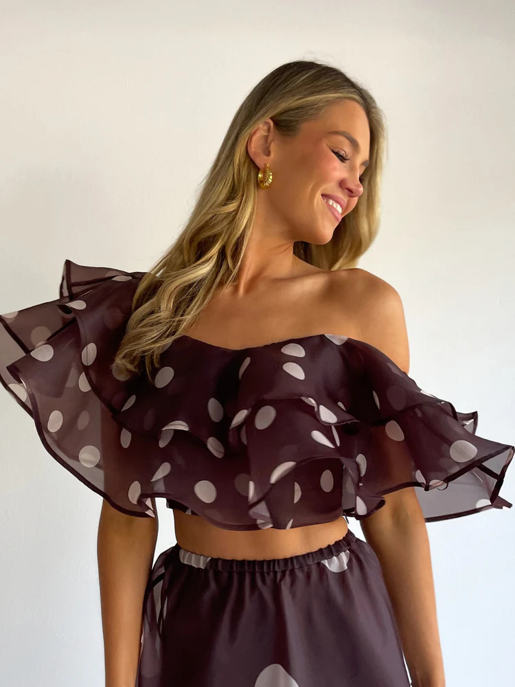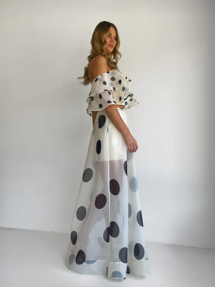 Sexy Strapless Irregular Print Ruffled Fashion Suit Long Dress