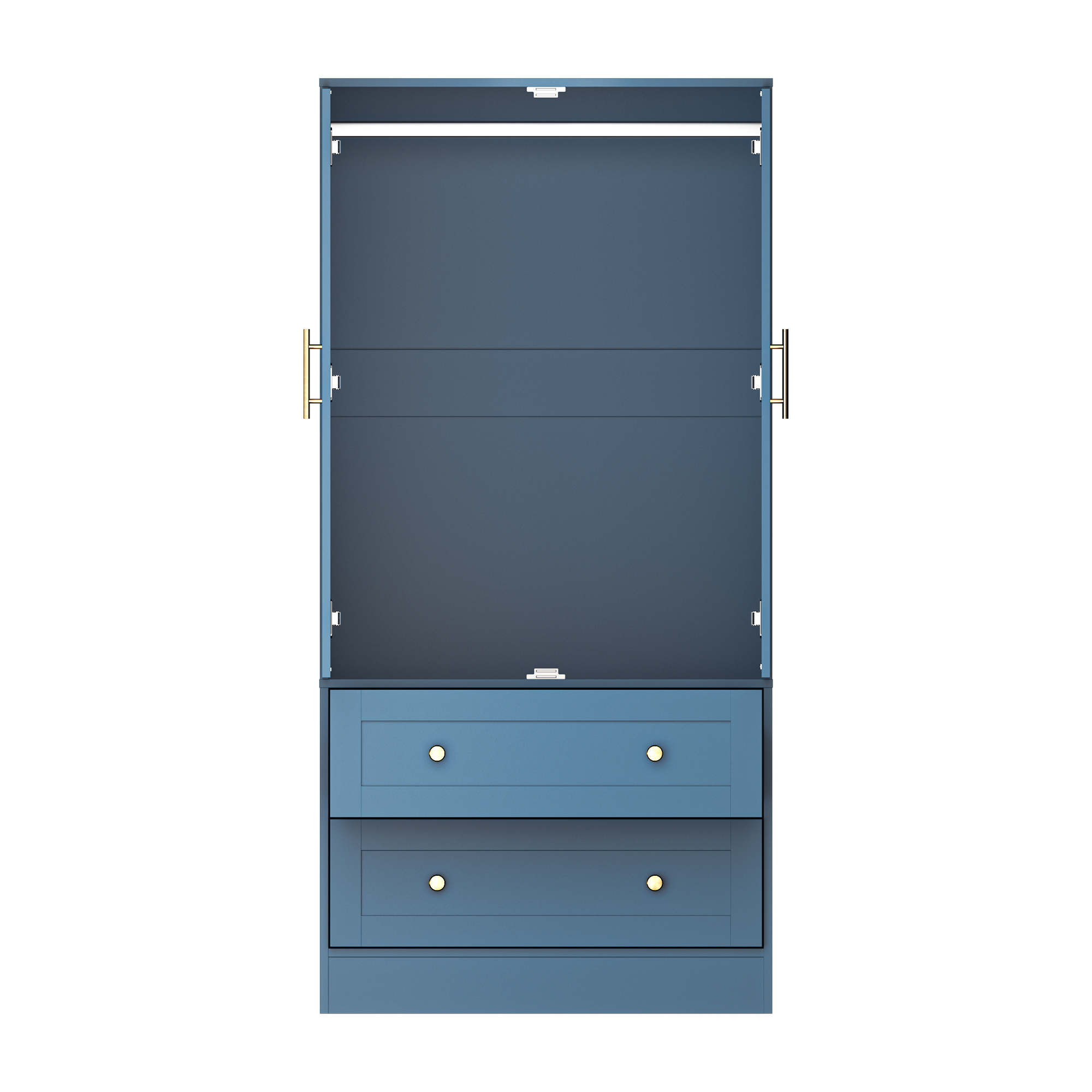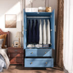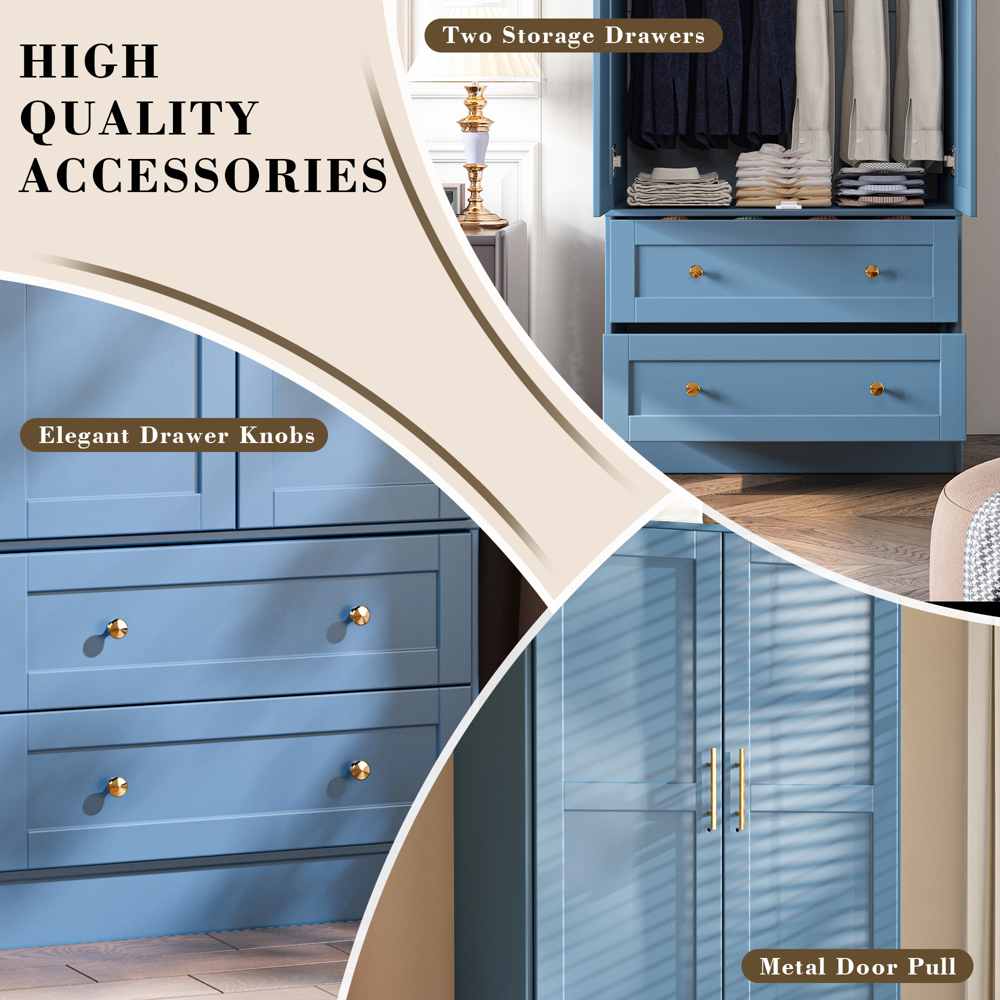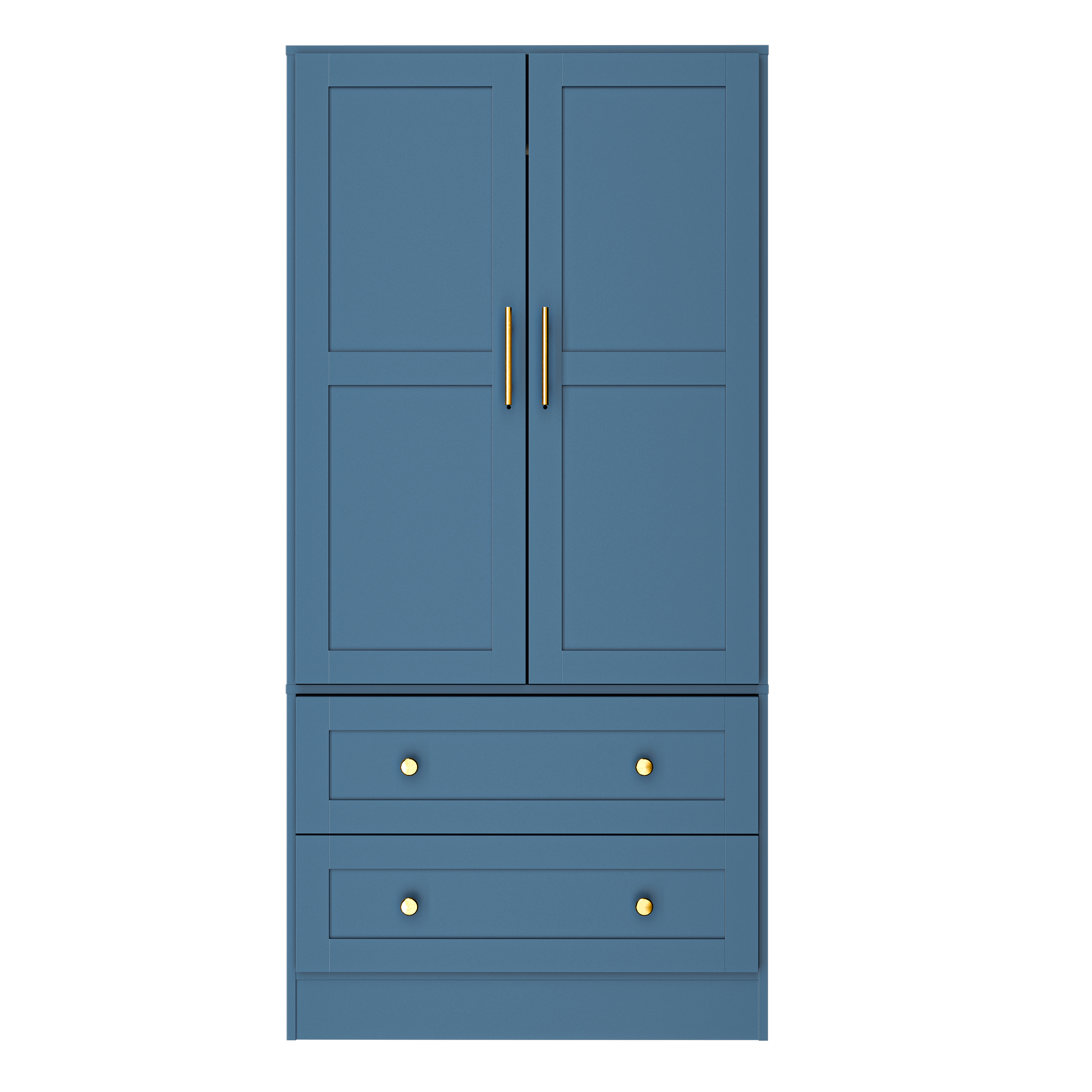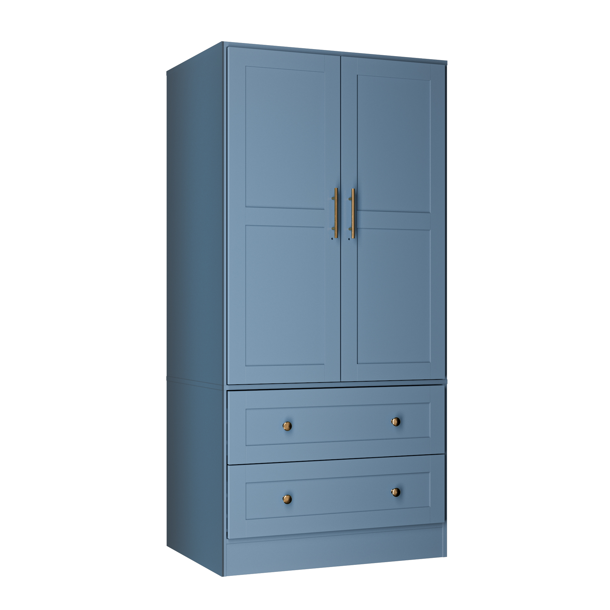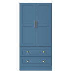 • Single Box ProductProduct Name:Shaker Style Classic Two-Door Wardrobe, Solid Wood Bedroom Armoire with Hanging Rod and Shelves, Spacious Storage Closet, Modern Farmhouse DesignMain Color:BlueMain Material:MDFProduct DimensionsAssembled Length (in.):31.49Assembled Width (in.):21.65Assembled Height (in.):64.96Product Weight (lbs.):124.87Package SizeLength (in.):46.00Width (in.):26.00Height (in.):9.00Weight (lbs.):127.87