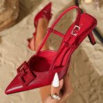 Casual everyday style • Pointed toe, buckle closure, high heel [6–8 cm inclusive], shallow opening for a slimming look • Blue PU, Black PU, Burgundy PU, White PU, Red PU, Apricot PU, Champagne PU, Pink PU, Lotus Pink PU