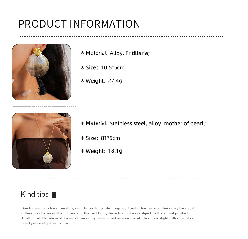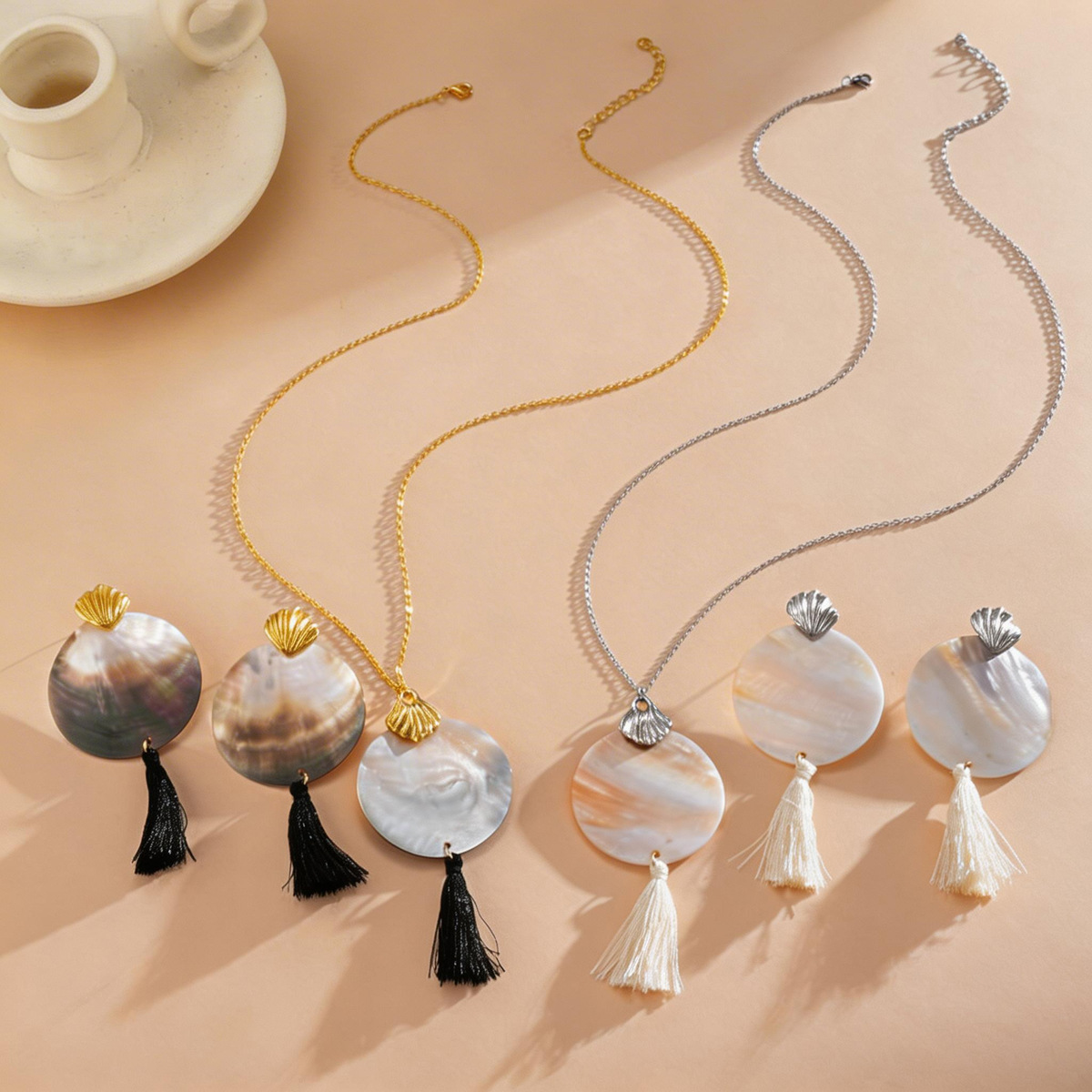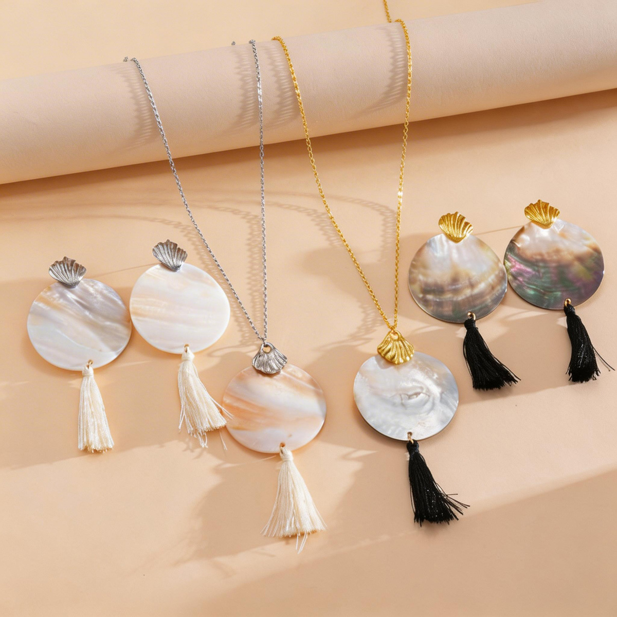 Shell-shaped Round Tassel Earrings And Necklace Jewelry Set is designed for style, comfort, and everyday use.