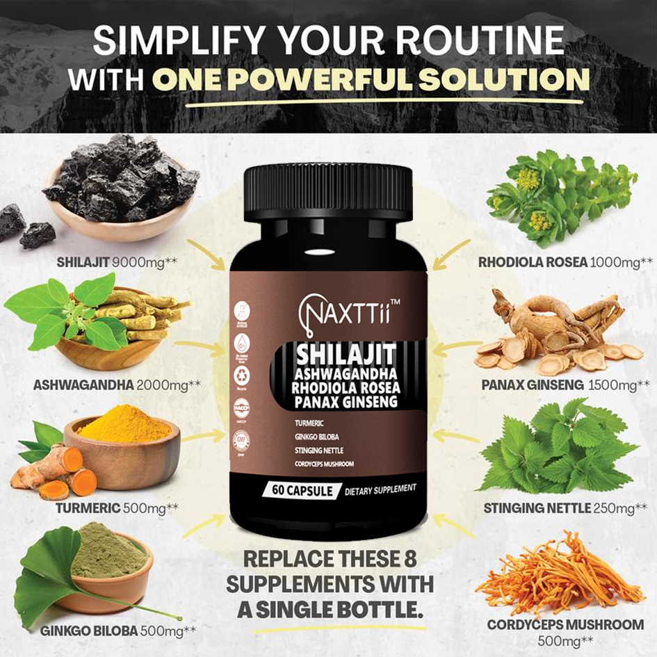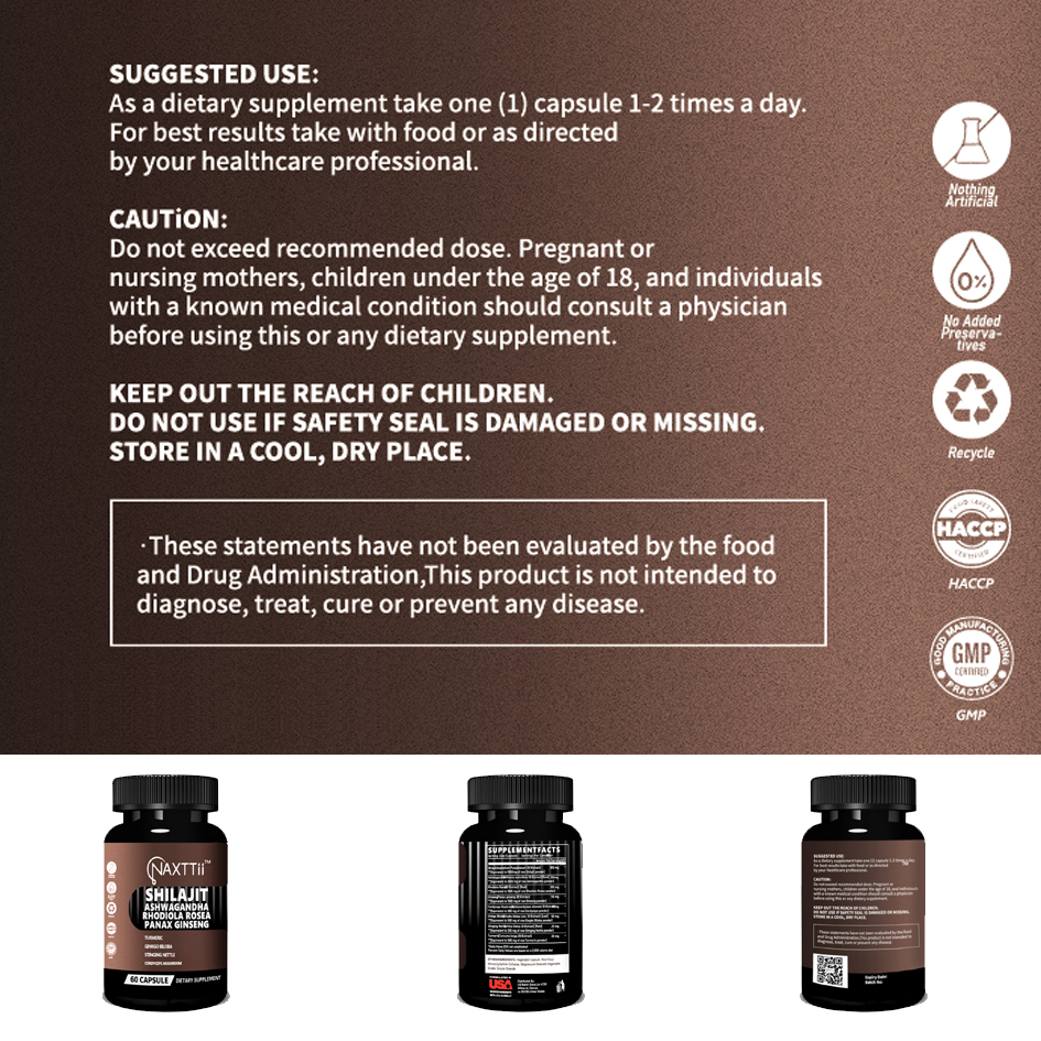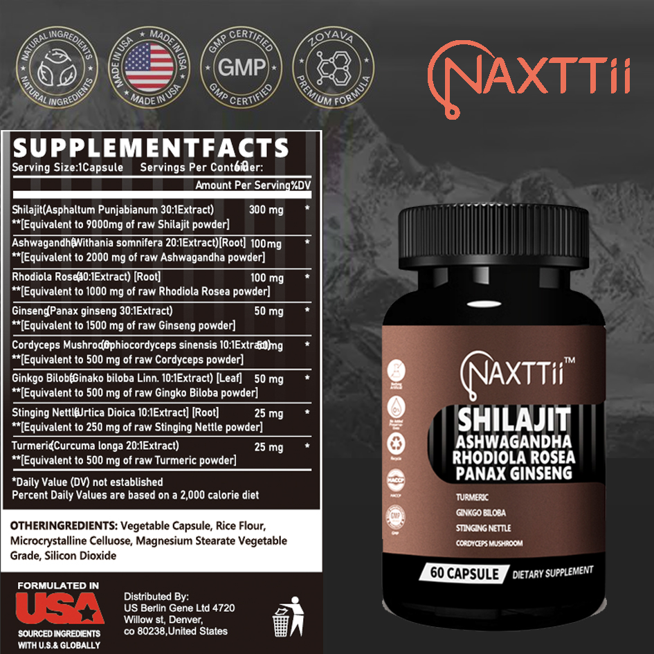 Shilajit Energy Support Capsules 60 Count Bottle Boost Immunity Natural Detox Support