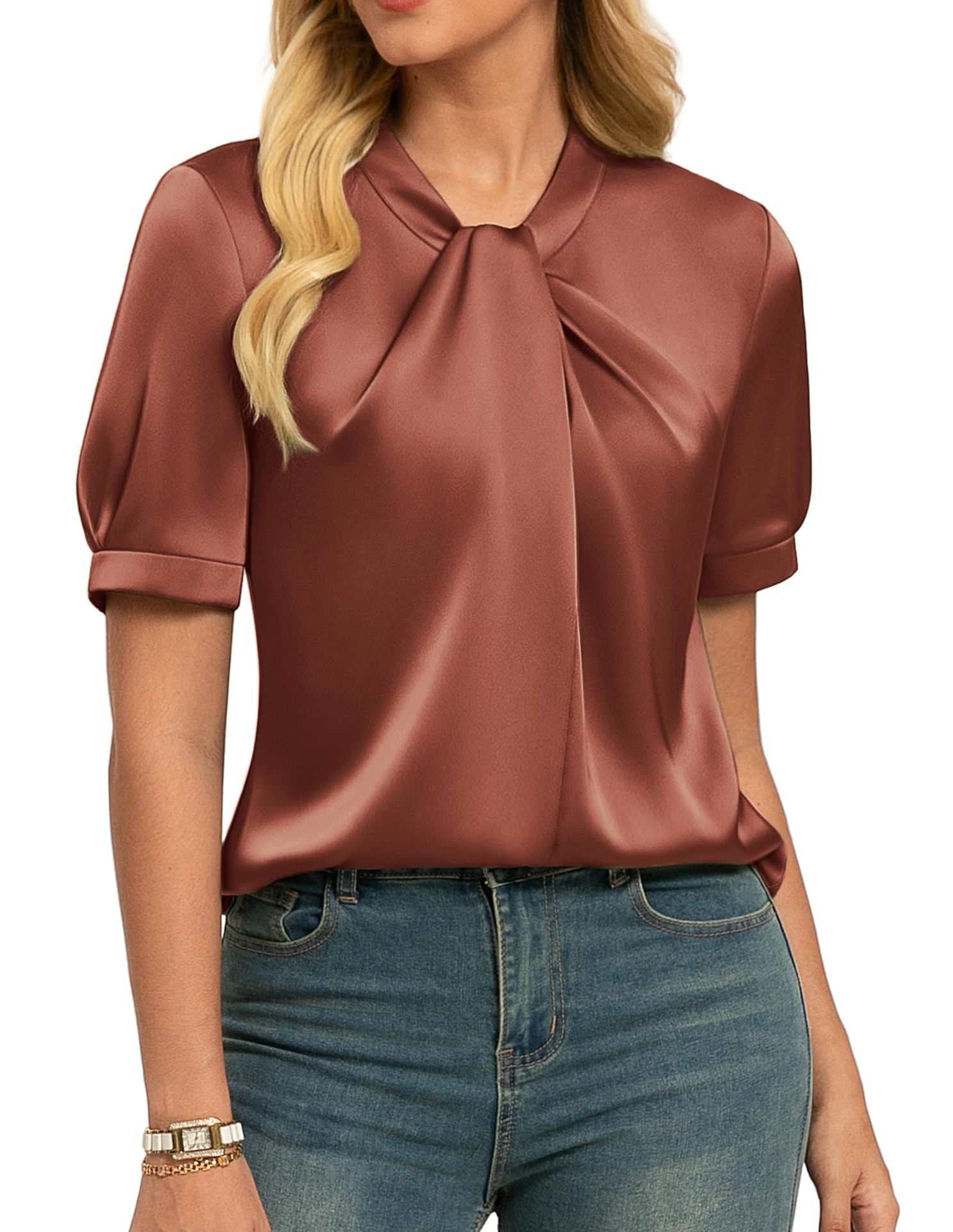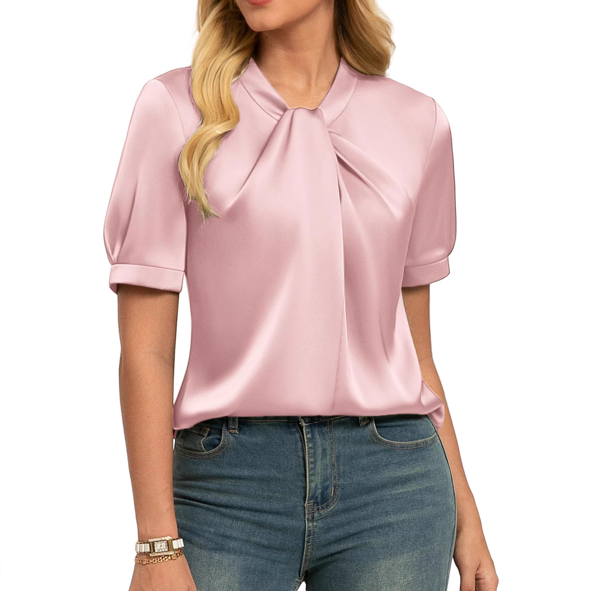 Short-sleeve Satin Shirt Business Casual