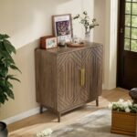 Sideboard Buffet Cabinet With Storage ,Carved 2 Door Sideboard,Multifunctional Accent Cabinet With Adjustable Layer Board For Living Room, Entryway, Hallway, Office, Kitchen And Dining Room