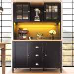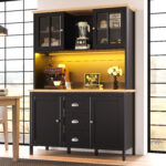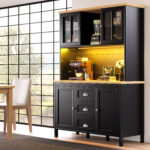 Sideboard, Storage Cabinet, Kitchen Cabinet, Tall Sideboard With LED Lighting, 120x40x179 Cm, 4 Doors & 3 Drawers, White Black