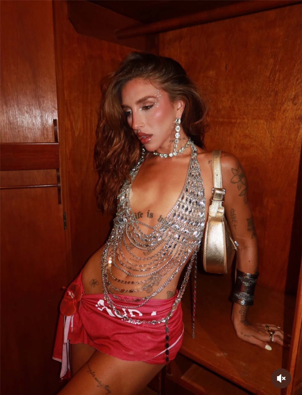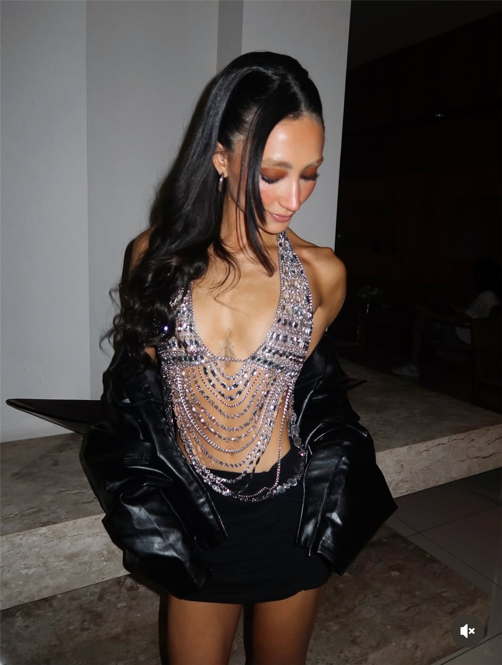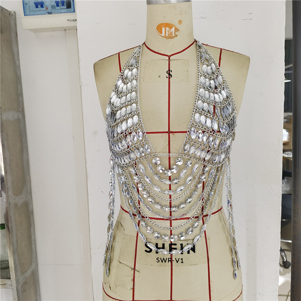 Silver Large Diamond Chest Chain Suspender Sexy Metal Chain Vest Party Chest Chain