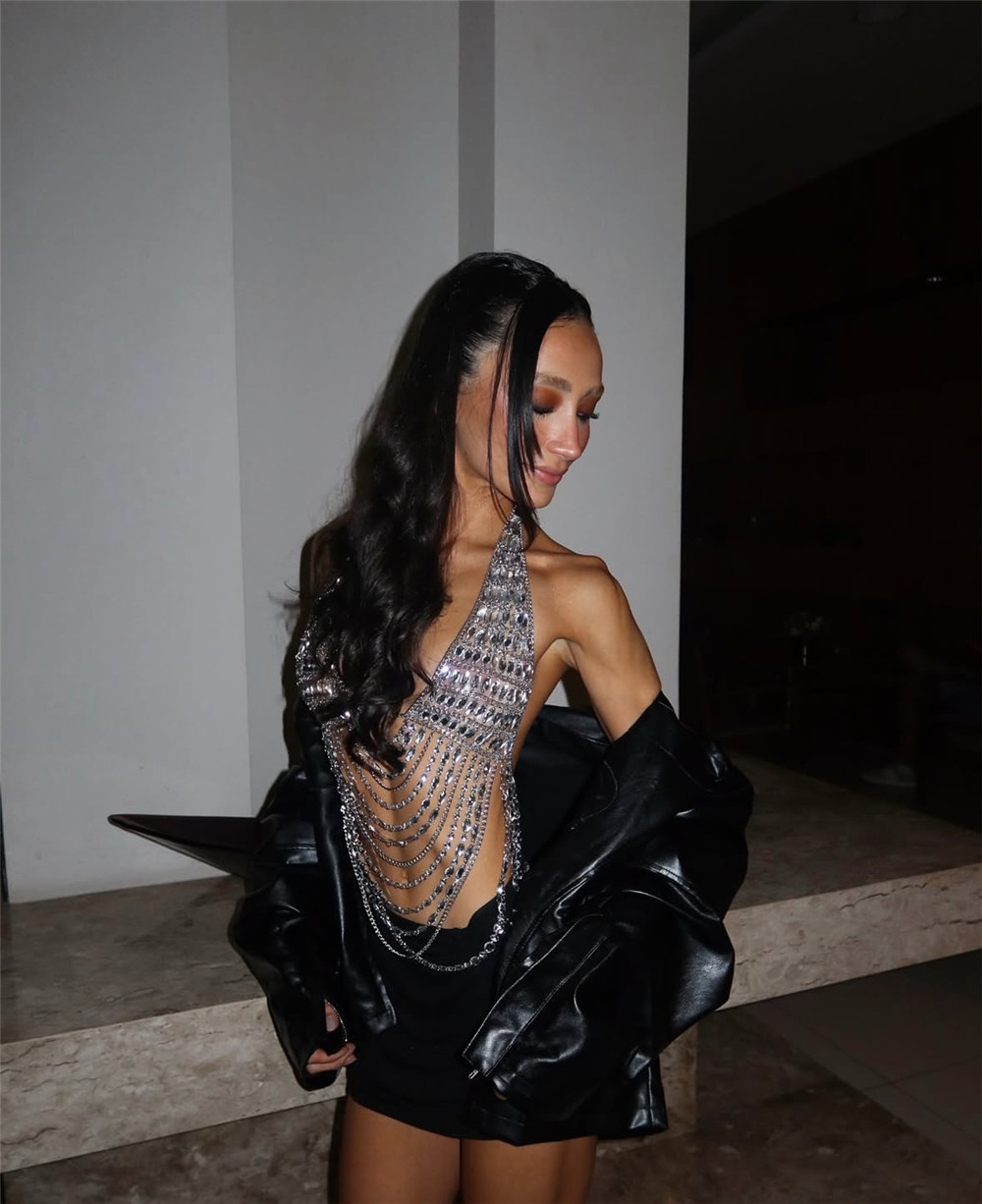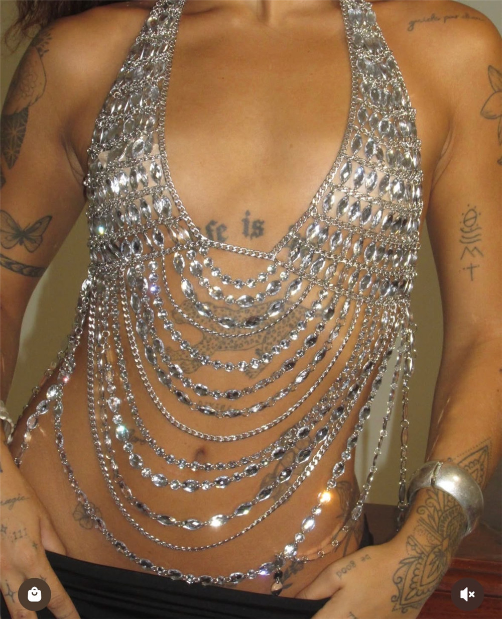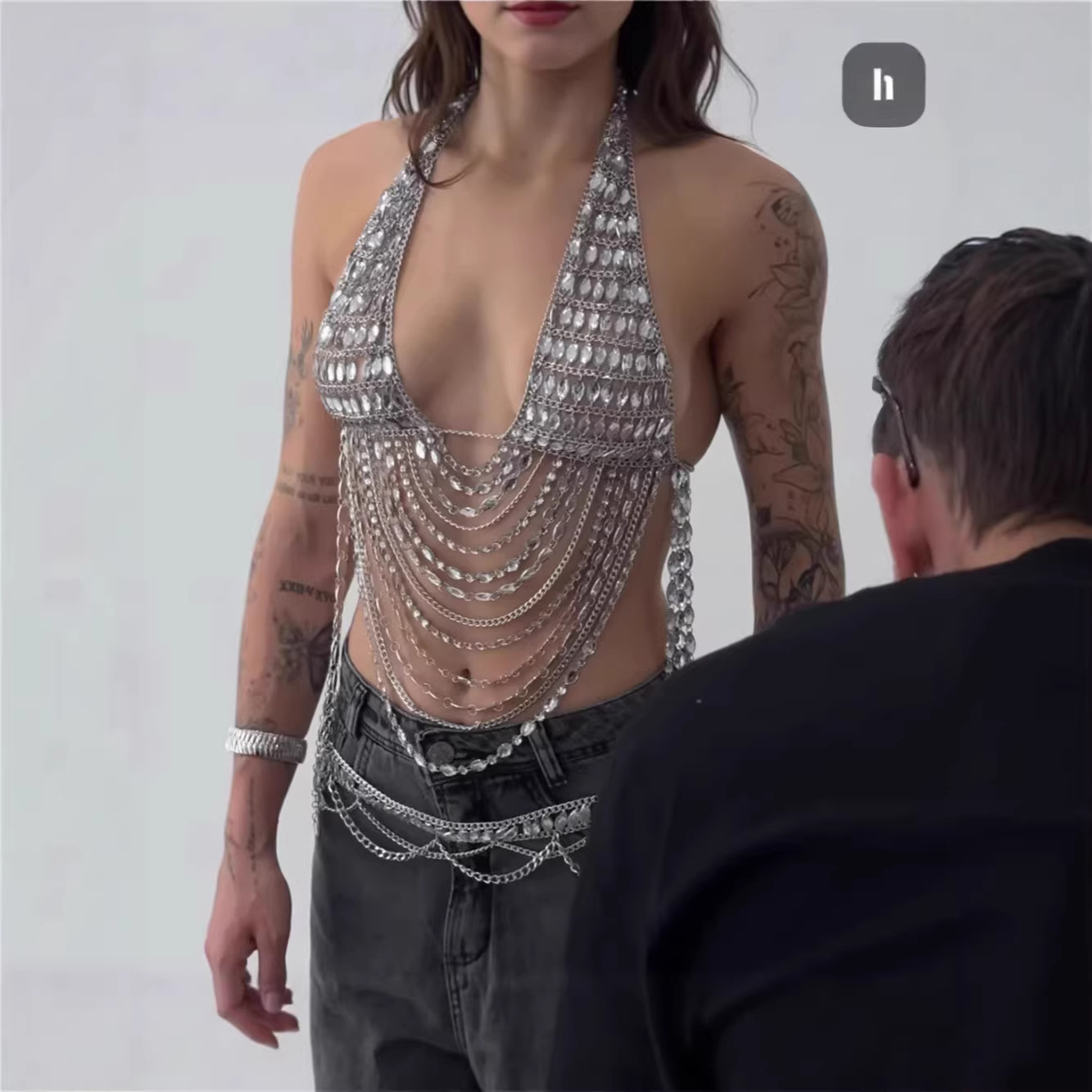 Silver Large Diamond Chest Chain Suspender Sexy Metal Chain Vest Party Chest Chain is designed for style, comfort, and everyday use.