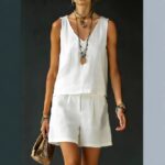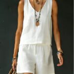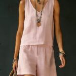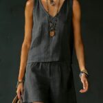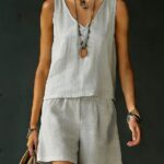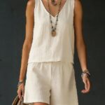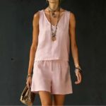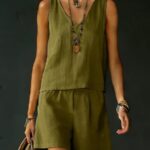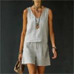 Be the first to review “Sleeveless Linen Cotton Top Vest And Shorts Womens Solid Color Two-Piece Set”