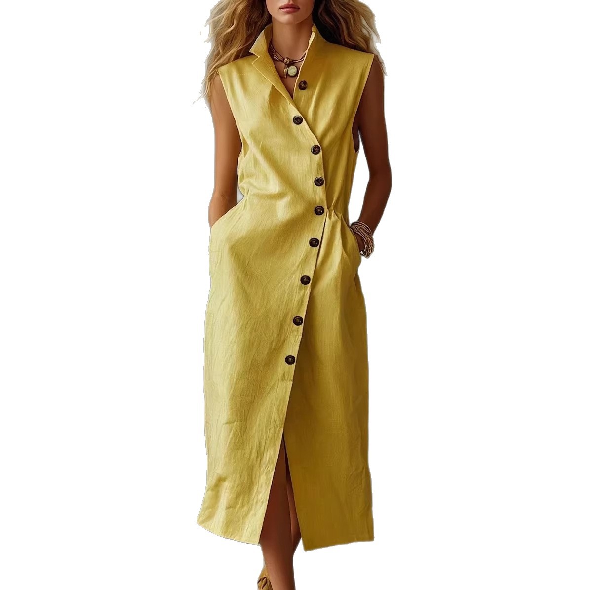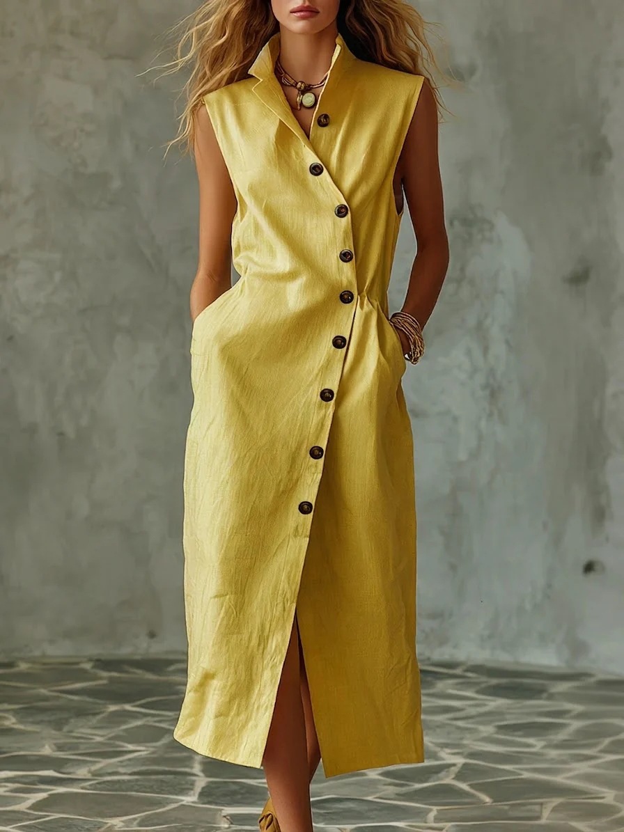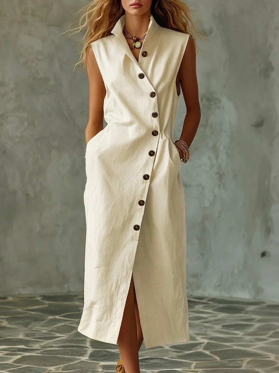 Slim-fit Elegant Single-breasted Dress With A Stand-up Collar For Women is designed for style, comfort, and everyday use.