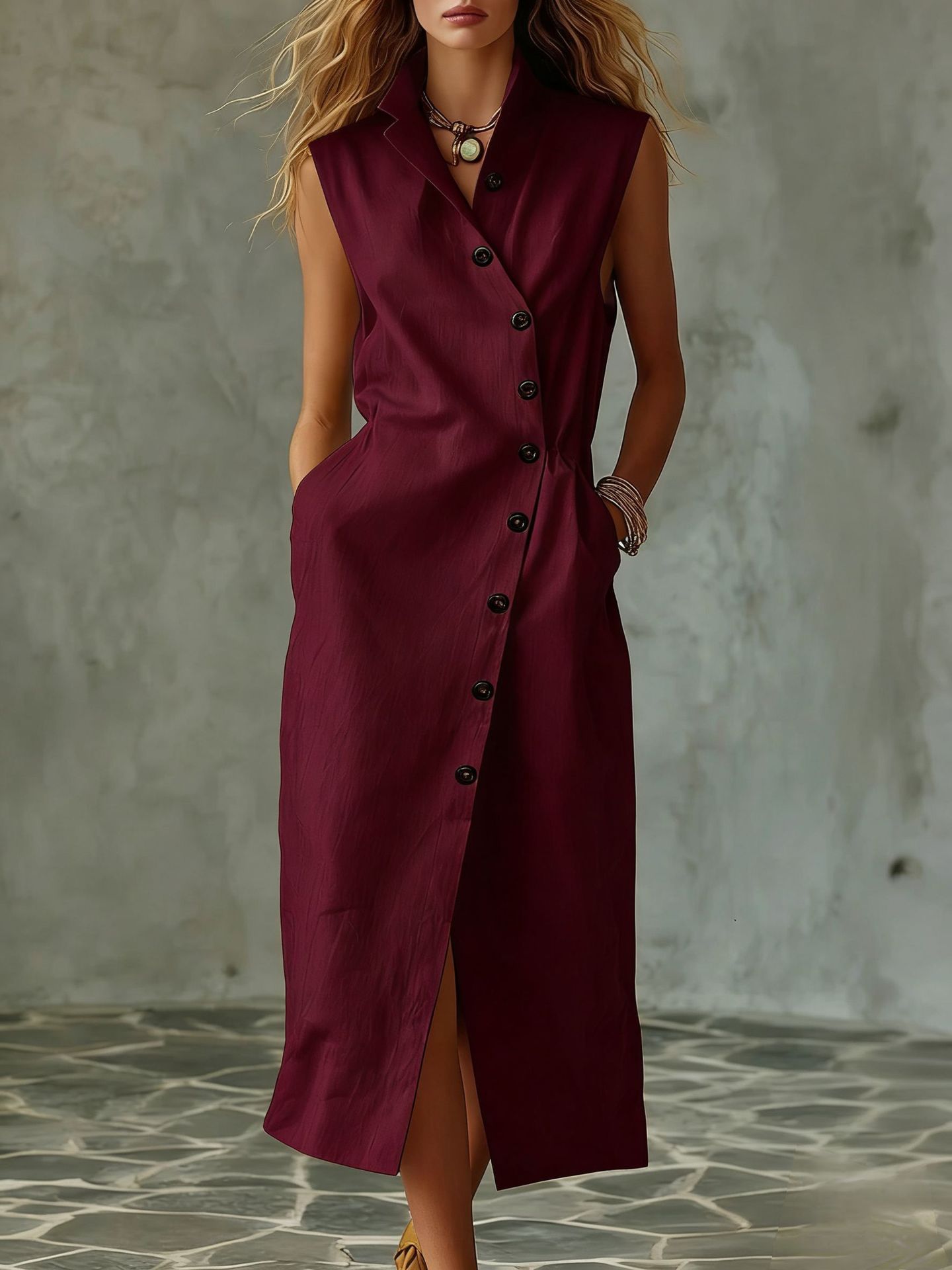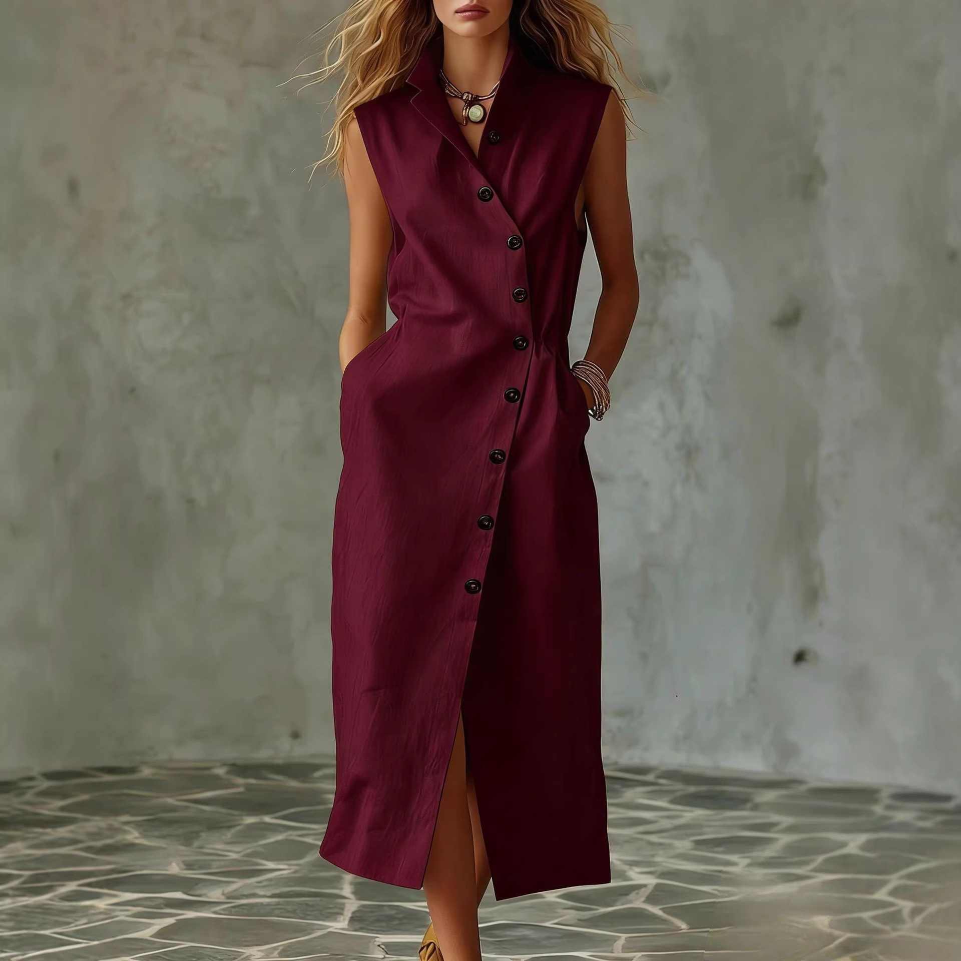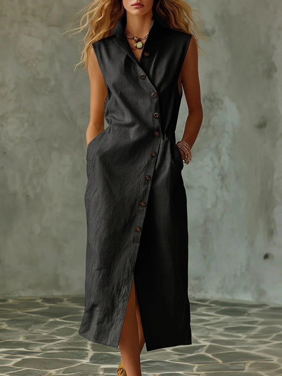 Slim-fit Elegant Single-breasted Dress With A Stand-up Collar For Women is designed for style, comfort, and everyday use.