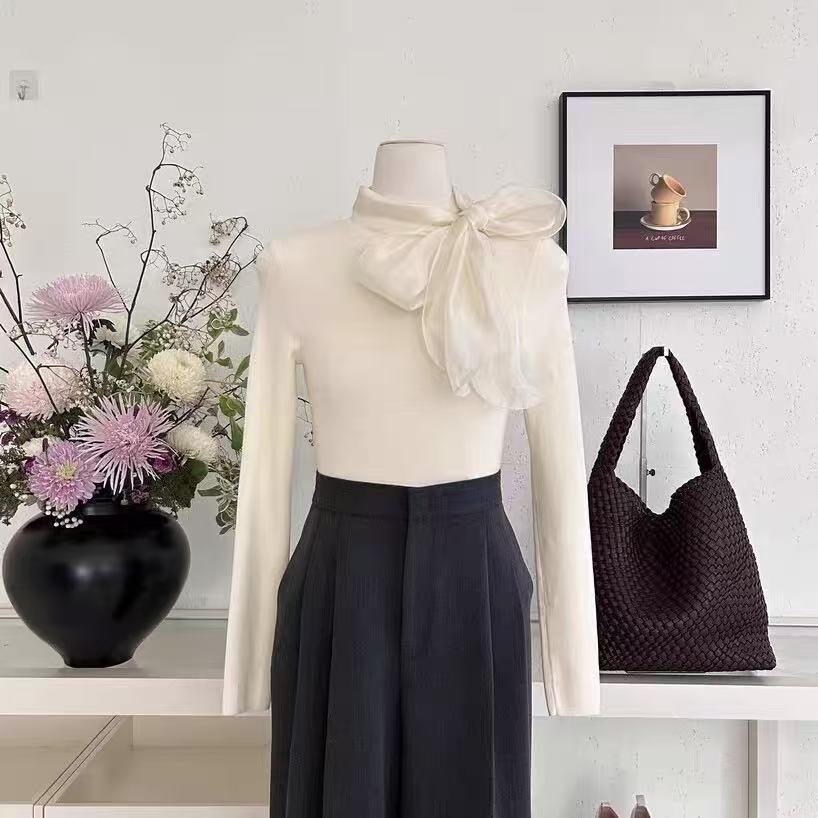 Slim-fit Knitted Top With A Bow New Autumnwinter Style