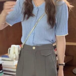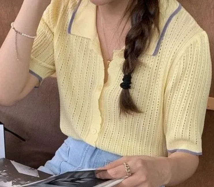 Slim-fit Polo-neck Sheer Silk Top