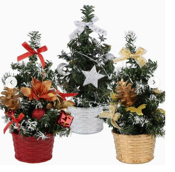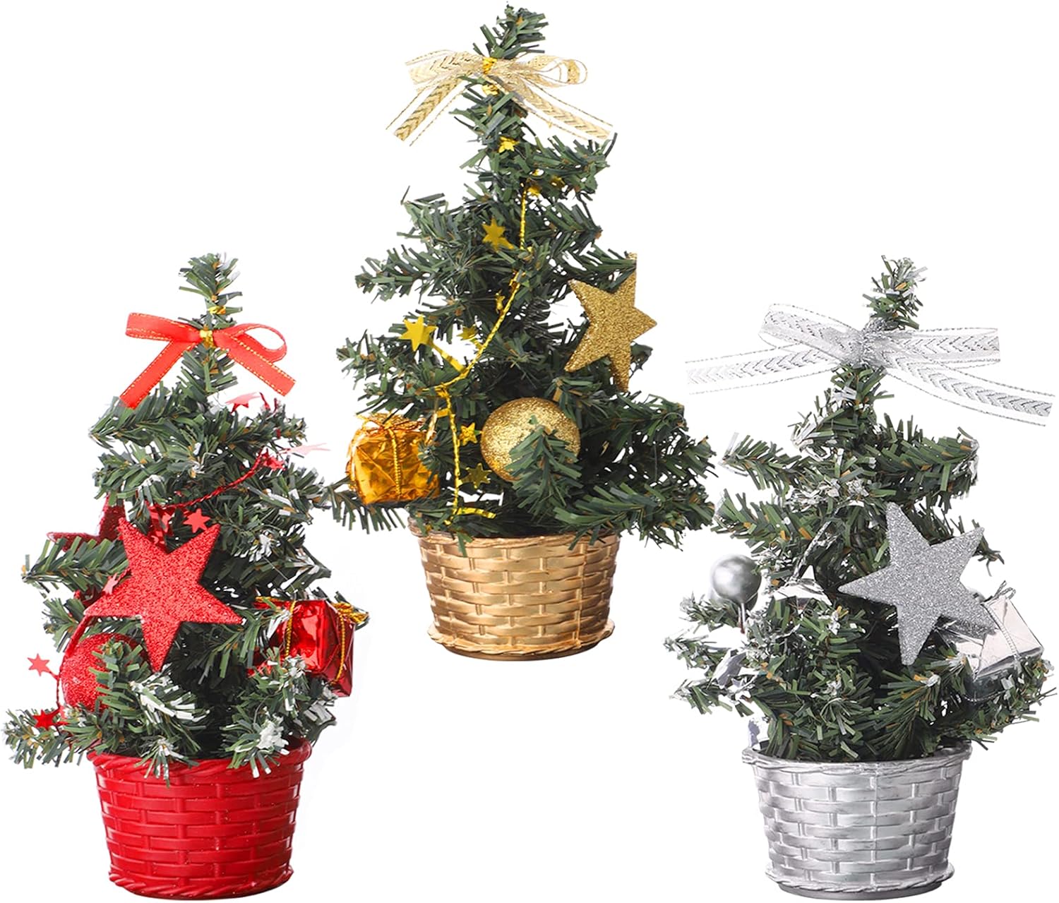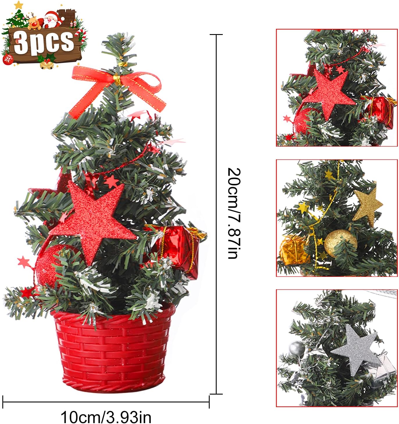 Small Christmas Tree With Decorations Set – Artificial Tabletop Christmas Tree For Desk Display, Festive Christmas Tree Ornament Pack Of 3 Mini Small Christmas Trees For Table