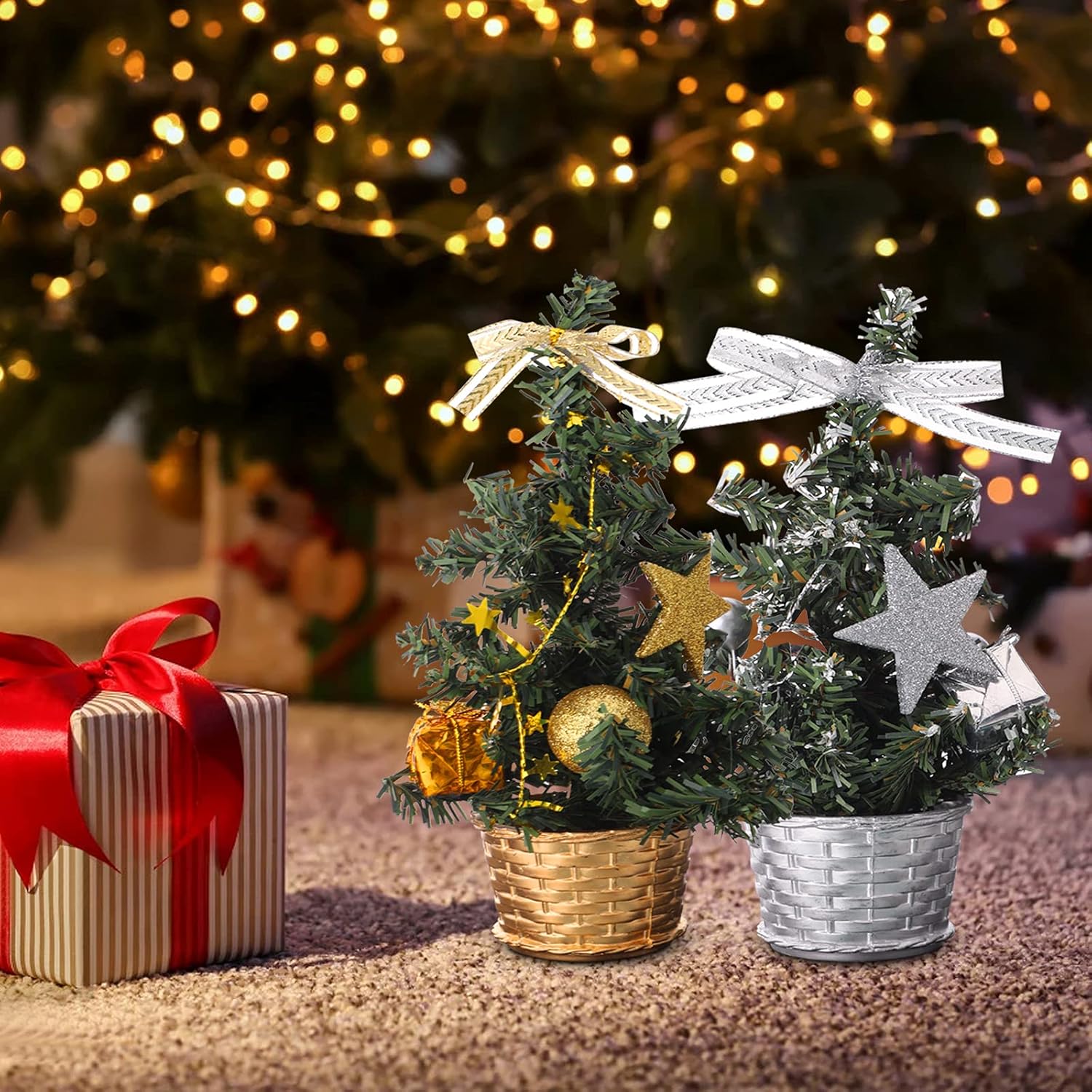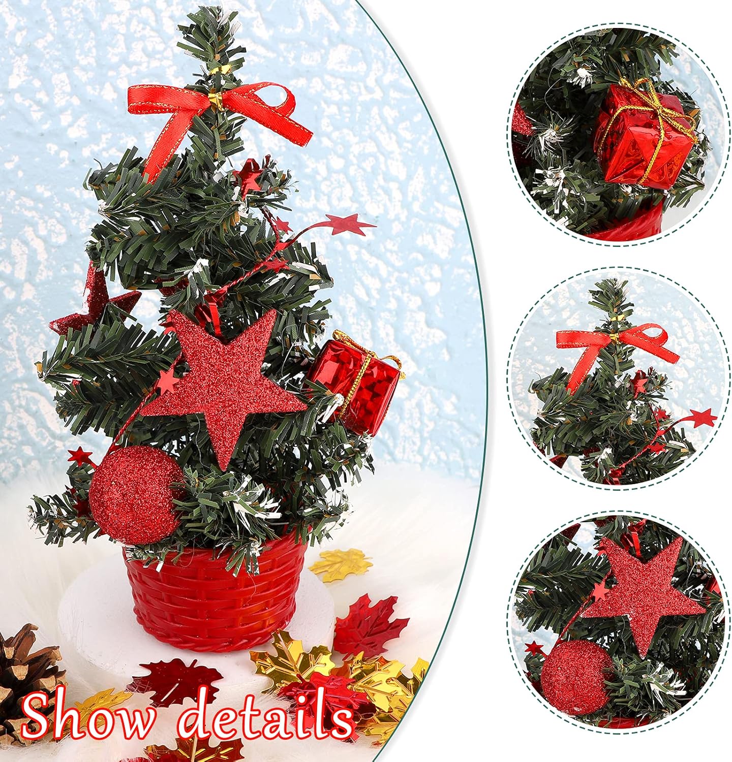 Small Christmas Tree With Decorations Set - Artificial Tabletop Christmas Tree For Desk Display, Festive Christmas Tree Ornament Pack Of 3 Mini Small Christmas Trees For Table