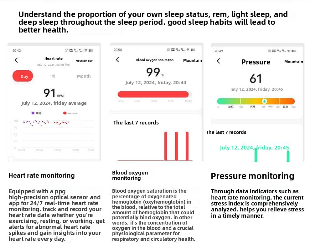 • Heart Rate Monitoring — Continuous real-time heart rate tracking day and night