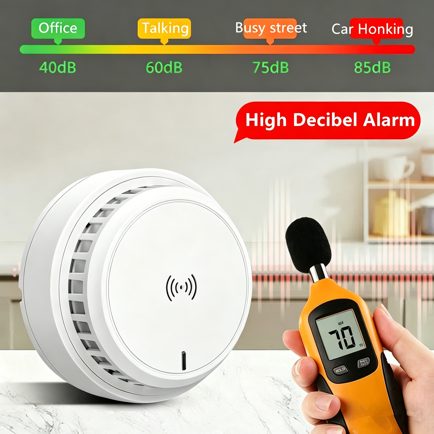 1. Timely Detection: The detector is equipped with advanced sensors to promptly detect the presence of smoke in the air, protecting occupants from the dangers. • 2. Alerts for Safety: Our alarm is designed to emit a loud warning signal when dangerous levels of smoke are detected, alerting residents to take necessary evacuation measures, thus providing an essential layer of safety for your home. • 3. LED Status Indicator: Featuring an LED indicator, the warning alarm sensor clearly displays the device’s current operational status. This visual aid makes it easy for users to monitor the alarm’s functionality and ensures they are always aware of the safety levels in their environment.