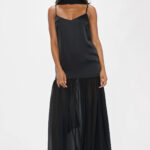 Solid-color Chiffon And Satin Patchwork Slip Dress