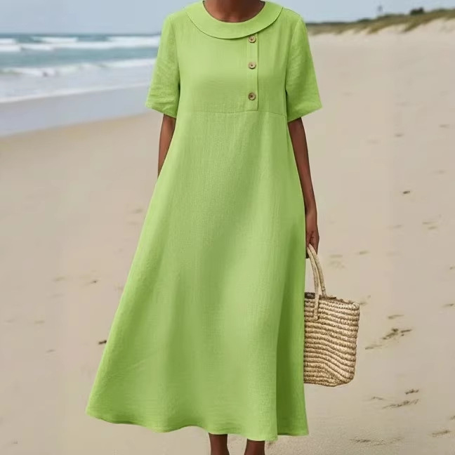 Solid-color Comfortable Crew-neck Loose-fitting Dress For Women