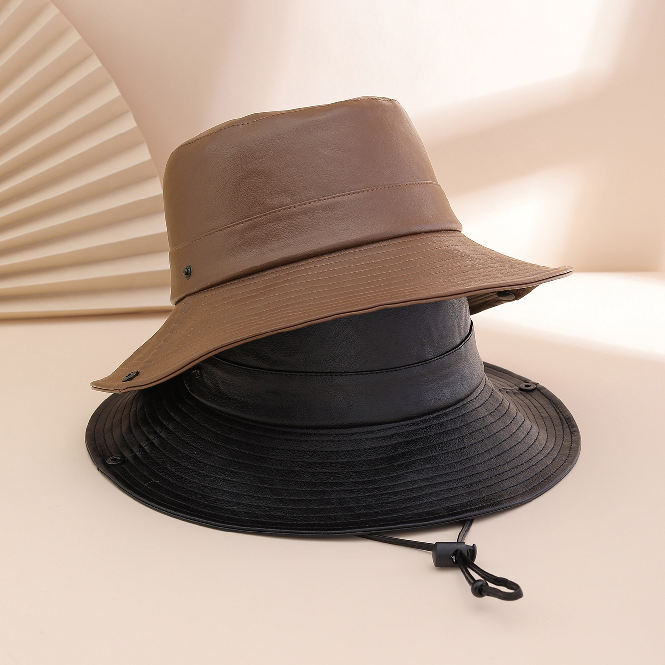 Solid-color Glossy PU Leather Windproof Wide-brimmed Sunshade, Sweet And Cool Street Style Fisherman’s Hat, Daily Commuting, Outings, Shopping is designed for style, comfort, and everyday use.