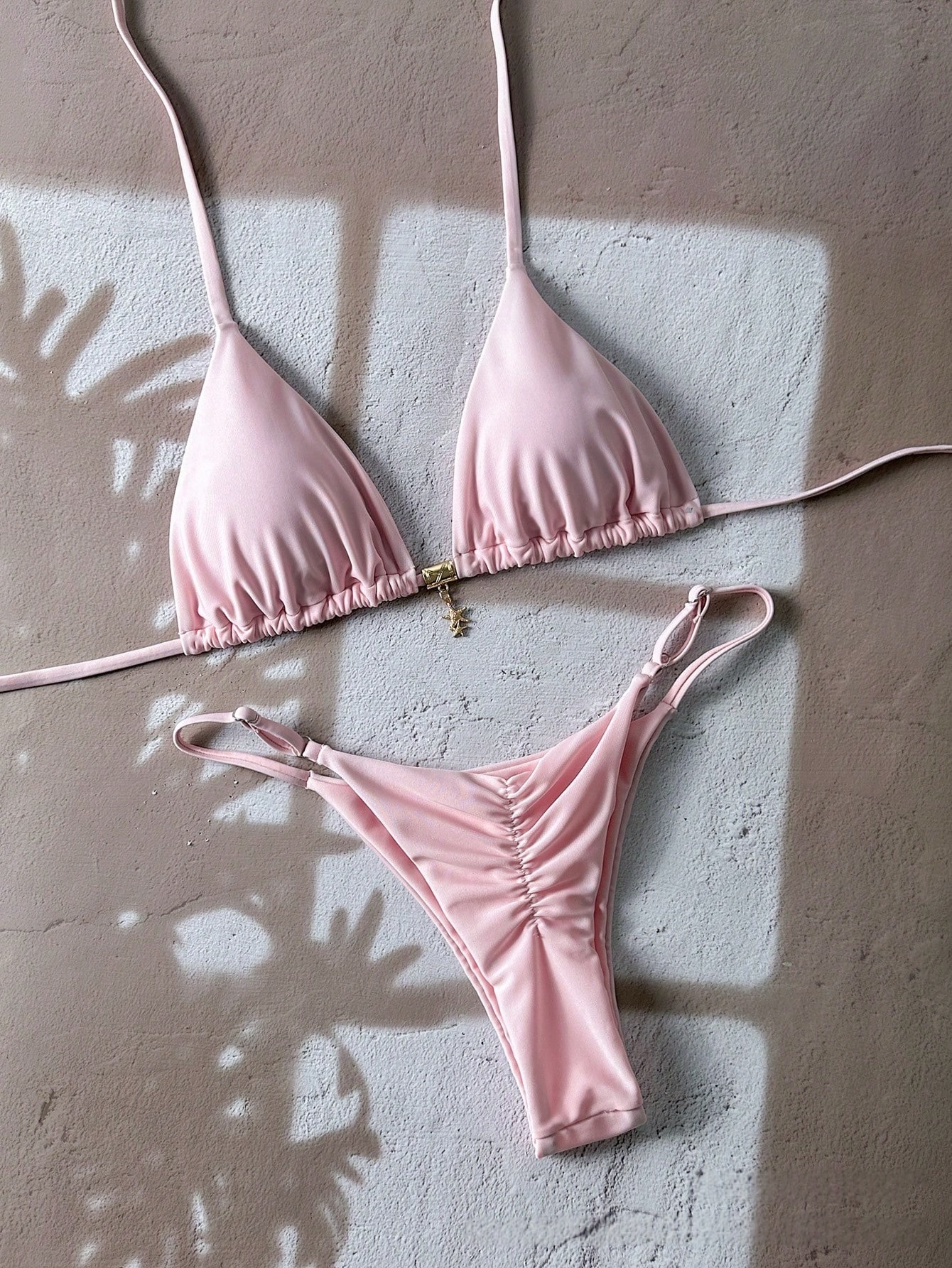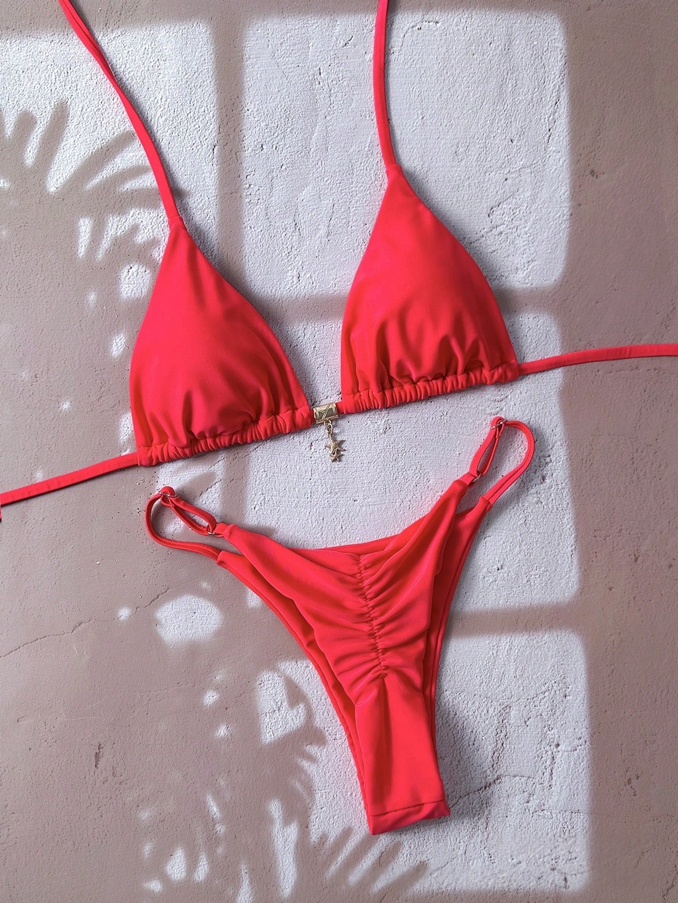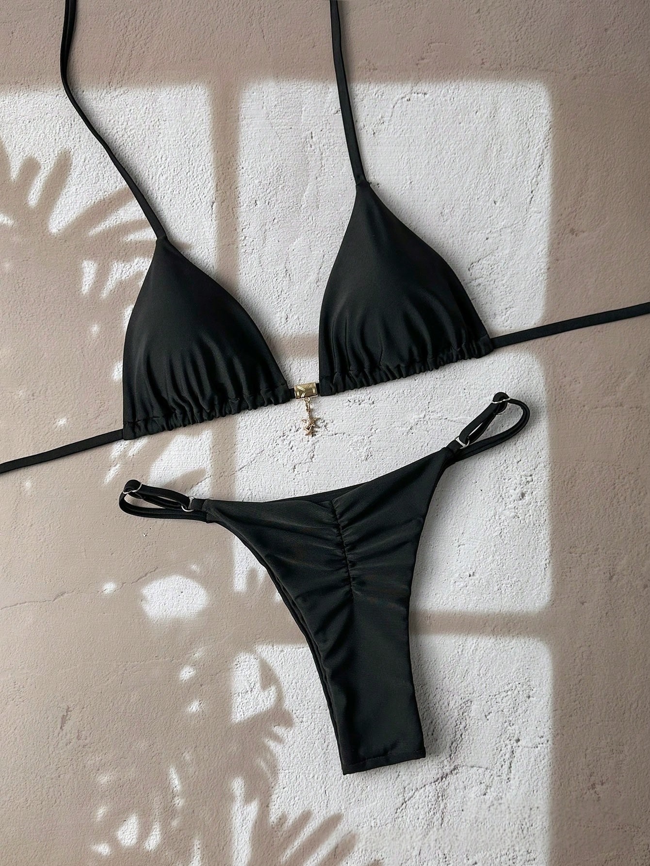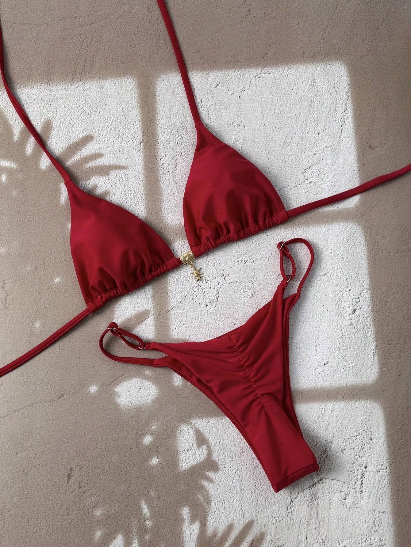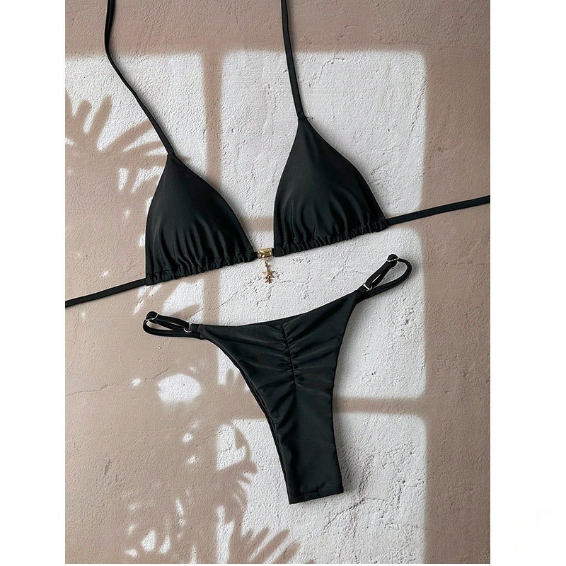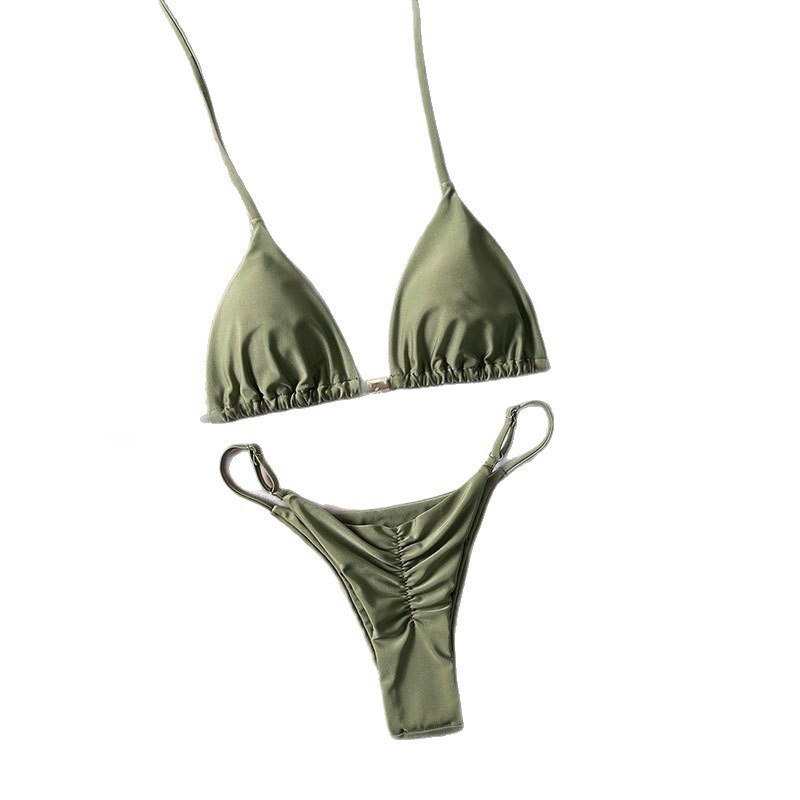 Solid-color Lace-up Halter Two-piece Bikini is designed for style, comfort, and everyday use.