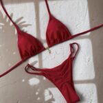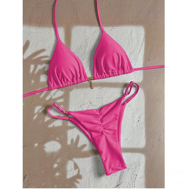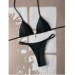 Be the first to review “Solid-color Lace-up Halter Two-piece Bikini”