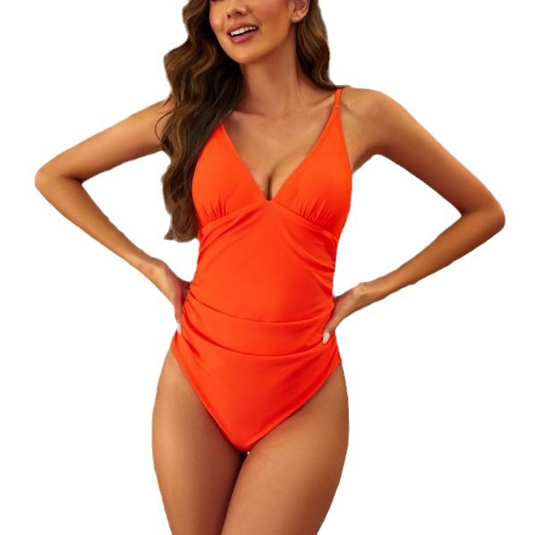 Solid-color Nylon One-piece Swimsuit With Built-in Padding