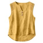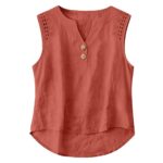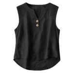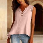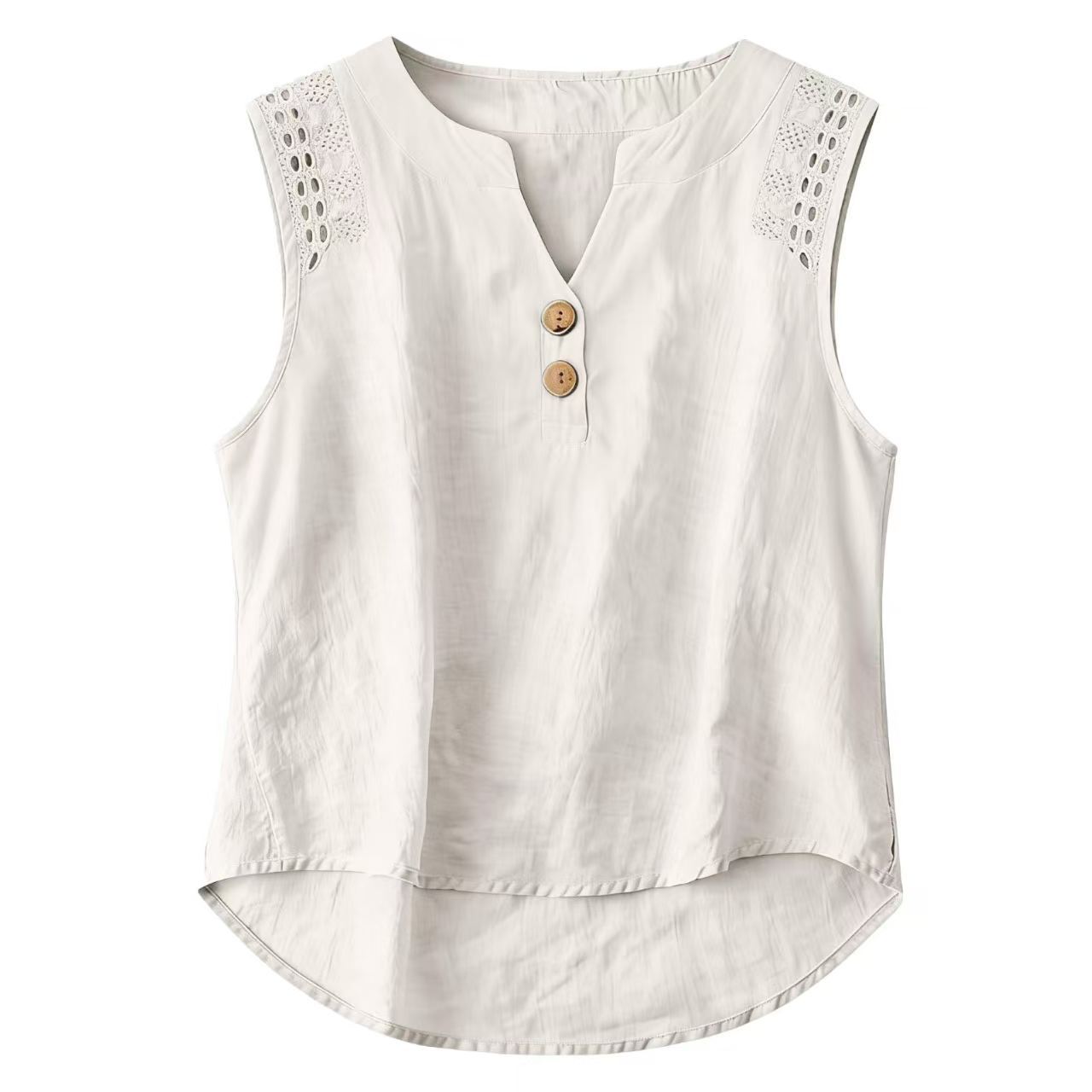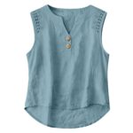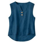 Be the first to review “Solid-color V-neck Hollow-out Button Cotton-linen Short-sleeve Top Shirt”