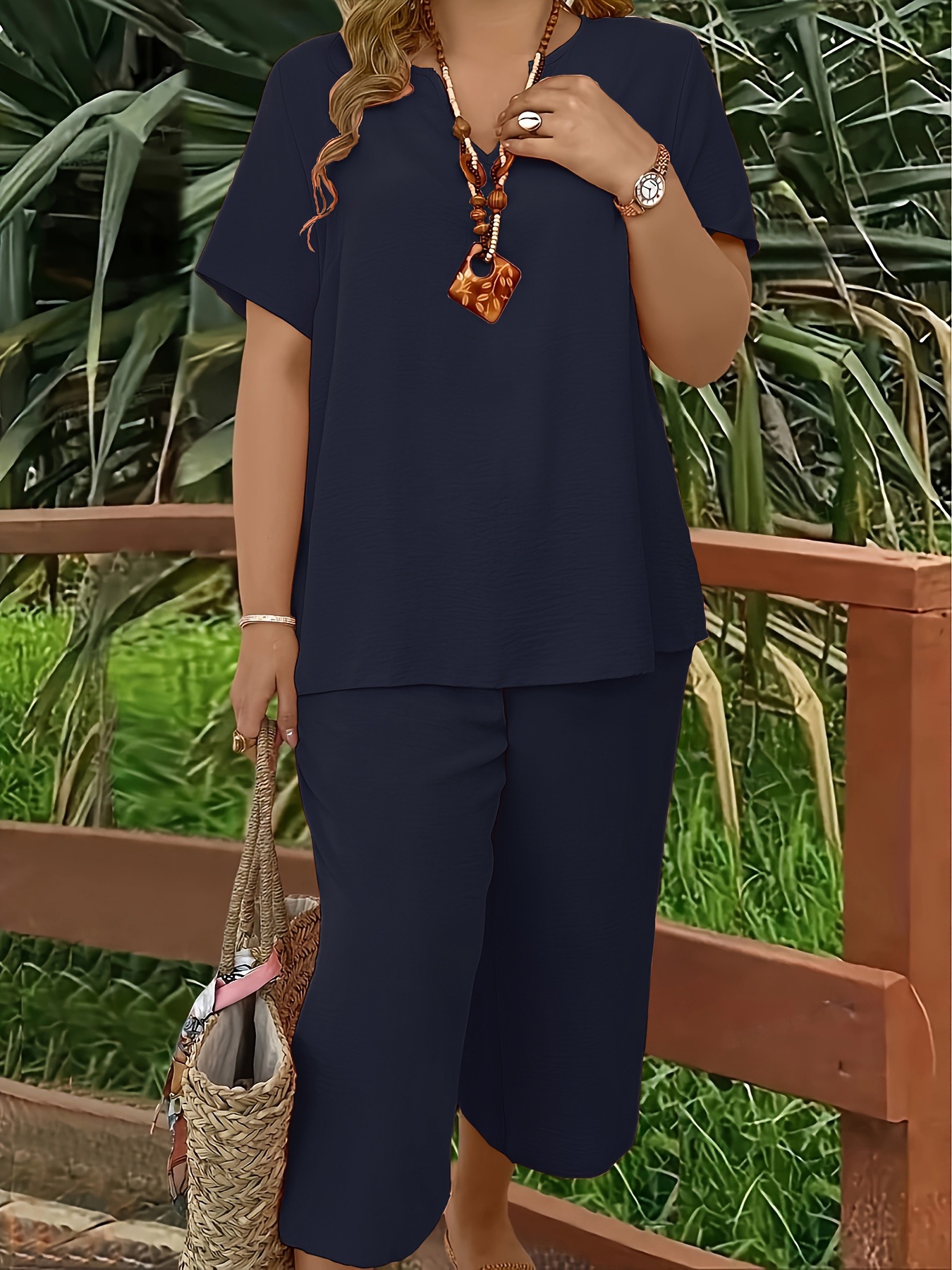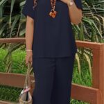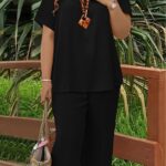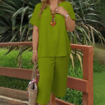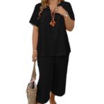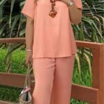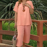 Be the first to review “Solid-color V-neck Short-sleeve Top And Wide-leg Pants”