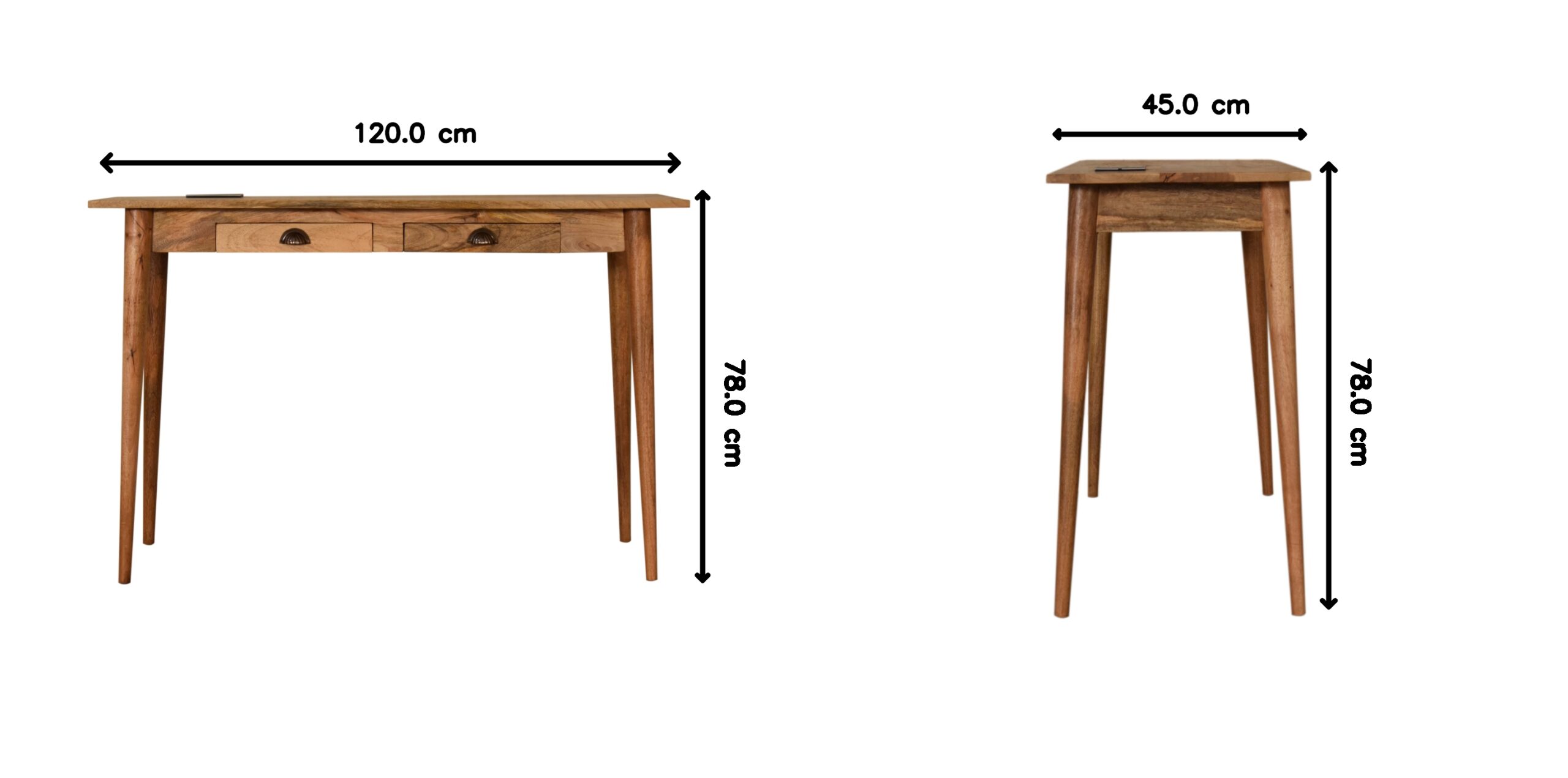 Solid Wood 2 Drawer Cable Writing Desk, Brown