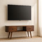 Solid Wood Chestnut Round Open Media Unit, 2 Drawers, 1 Open Slot, Dark Brown