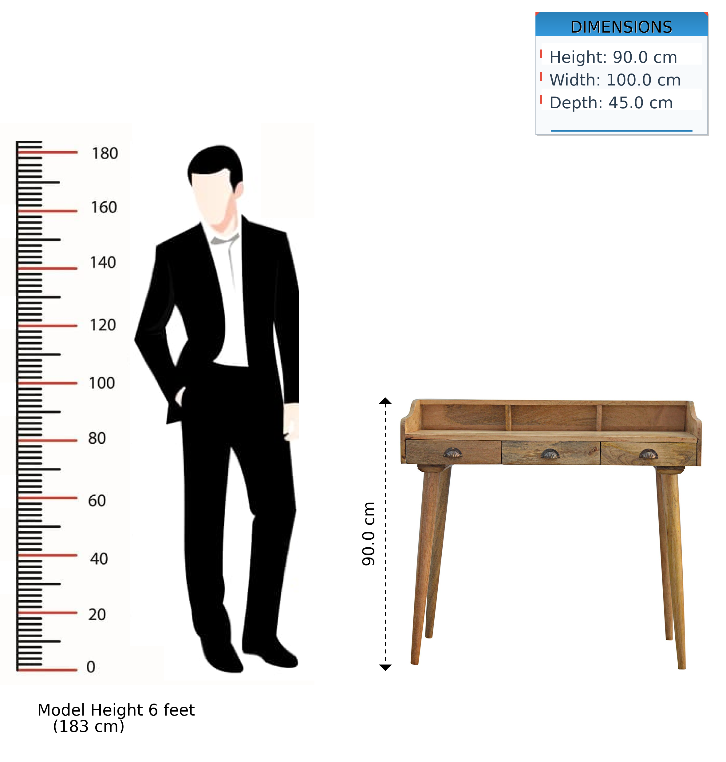Solid Wood Gallery Back Shell Writing Desk, 3 Drawers, 3 Slots, Brown