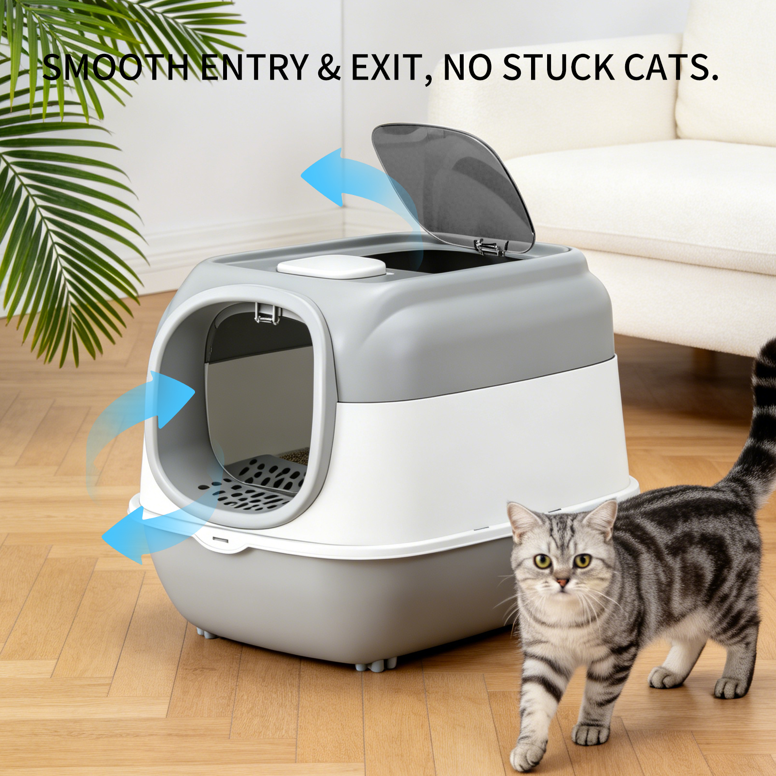 Spaceship Top Entry Fully Enclosed Cat Litter Box, With Free Litter Mat, Anti-Splash & Odor Locking, For Large Cats & Multi-Cat Households