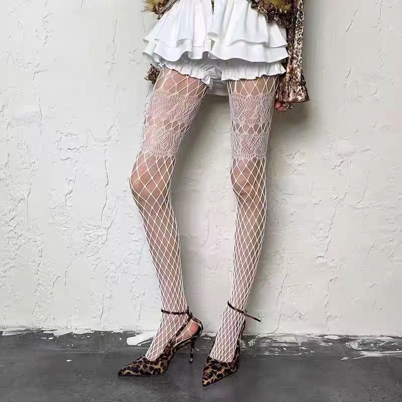 Splicing Hollowed Out Fishing Net Socks, Personalized Pantyhose, Solid Color