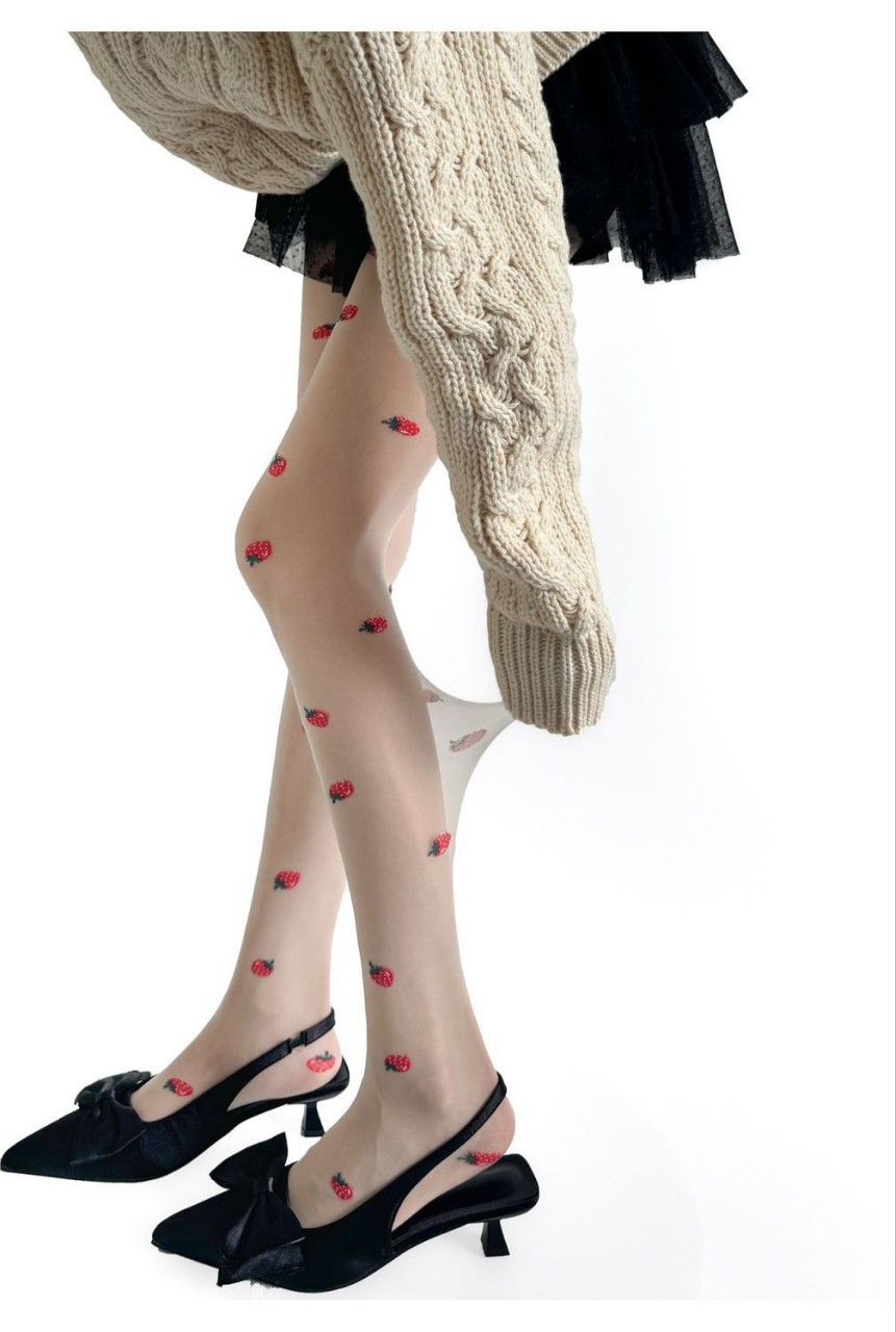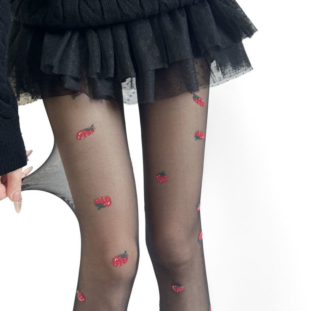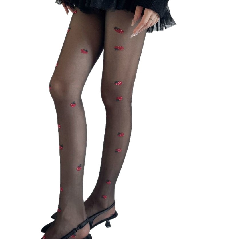 Spring And Summer Ultra-thin Sweet Strawberry Jacquard Stockings, Milky White Pure Desire Style Sheer Slimming Black Sexy Bottoming Socks For Women is designed for style, comfort, and everyday use.