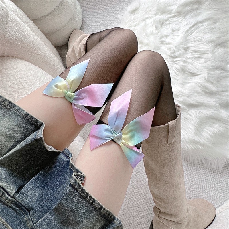 Spring Summer Thin Japanese Sweet Style Colorful Bow Over-the-Knee Stockings, Lace Alluring Sheer Thigh Highs is designed for style, comfort, and everyday use.