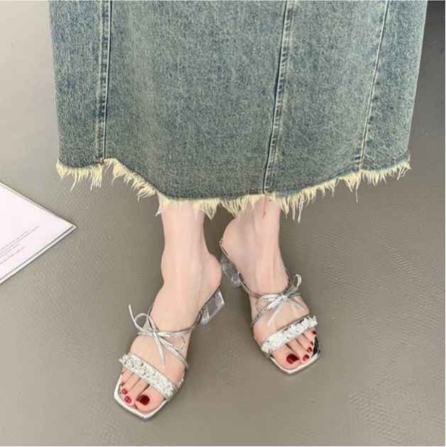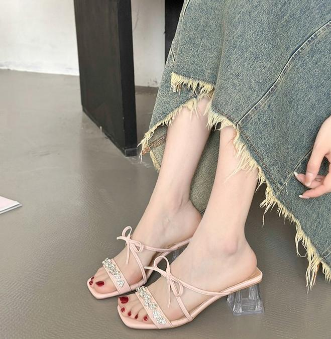 Square Bow Water Diamond Sandals With Exquisite Fairy Style French Temperament, Cool Slippers is designed for style, comfort, and everyday use.