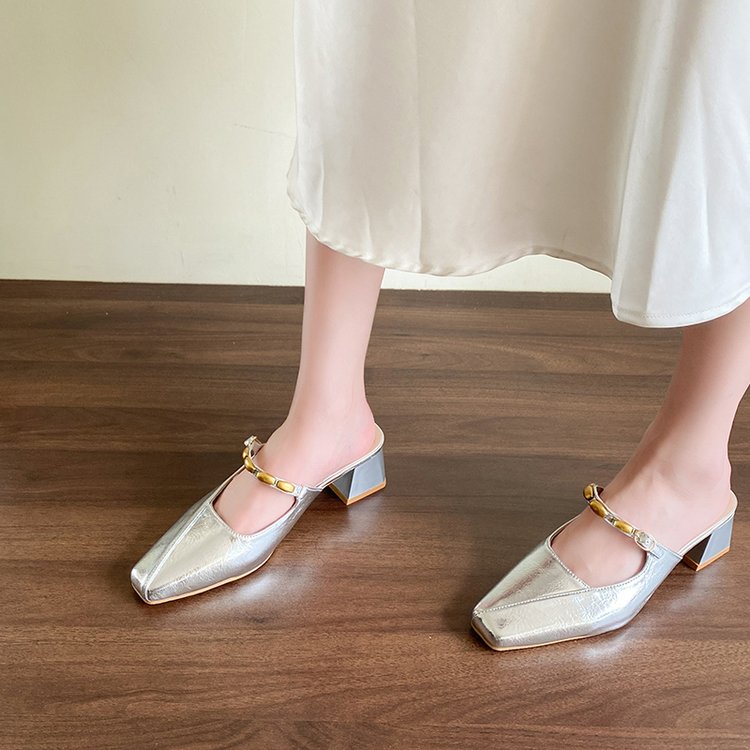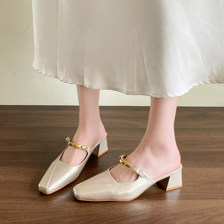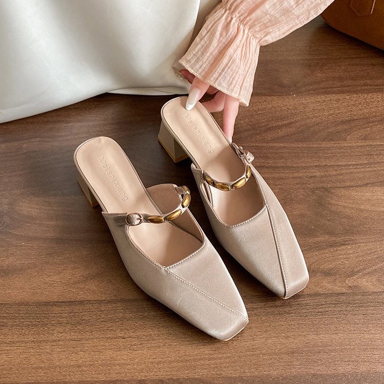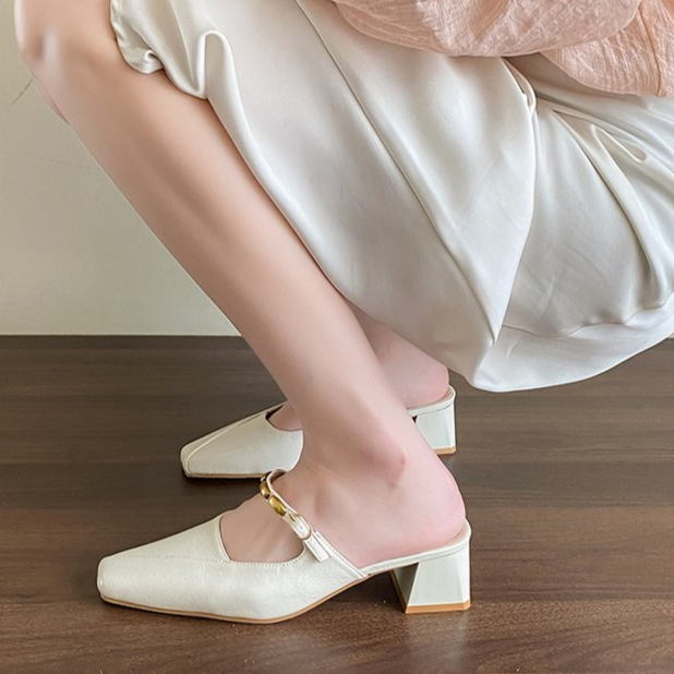 Square Toed MULler Shoes With Toe Caps, Cool Slippers, Women’s Thick Heels, High Heels, Half Drag Single Shoes is designed for style, comfort, and everyday use.