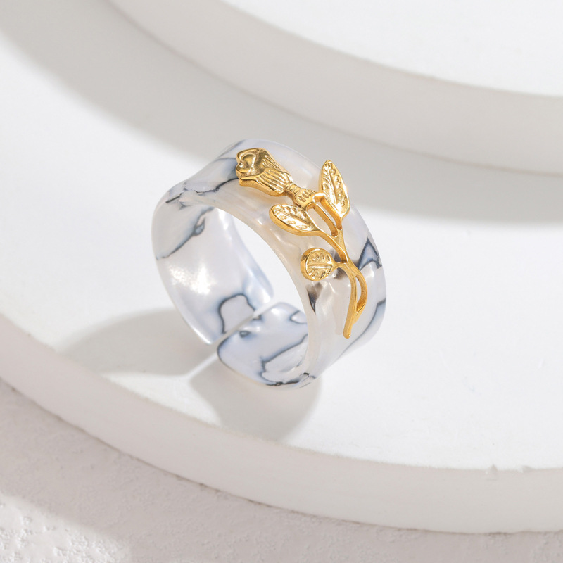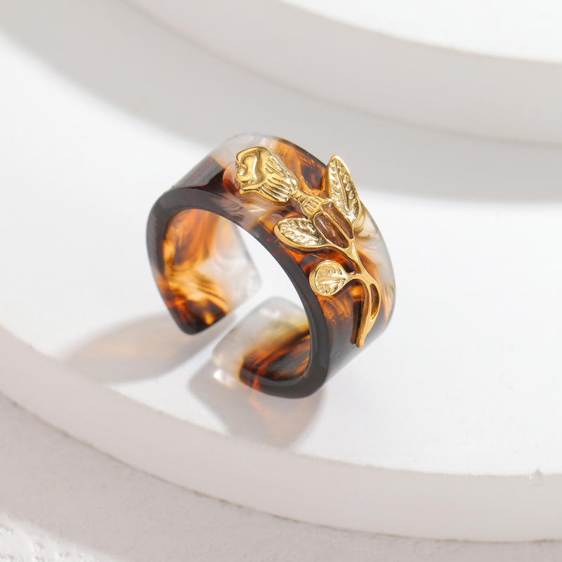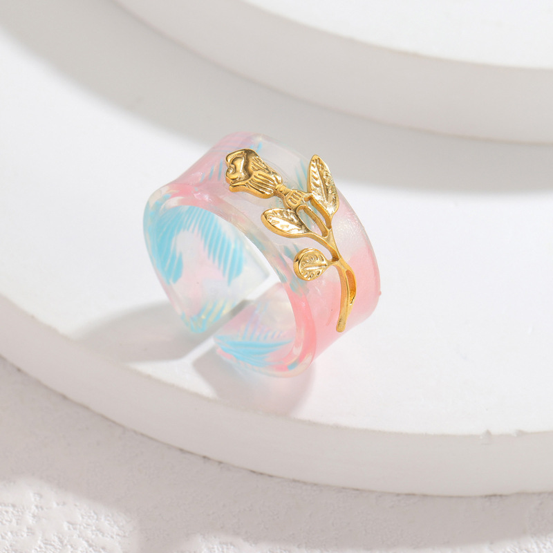 Stainless Steel Colored Flower Ring For Women