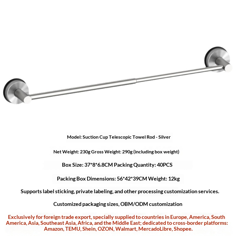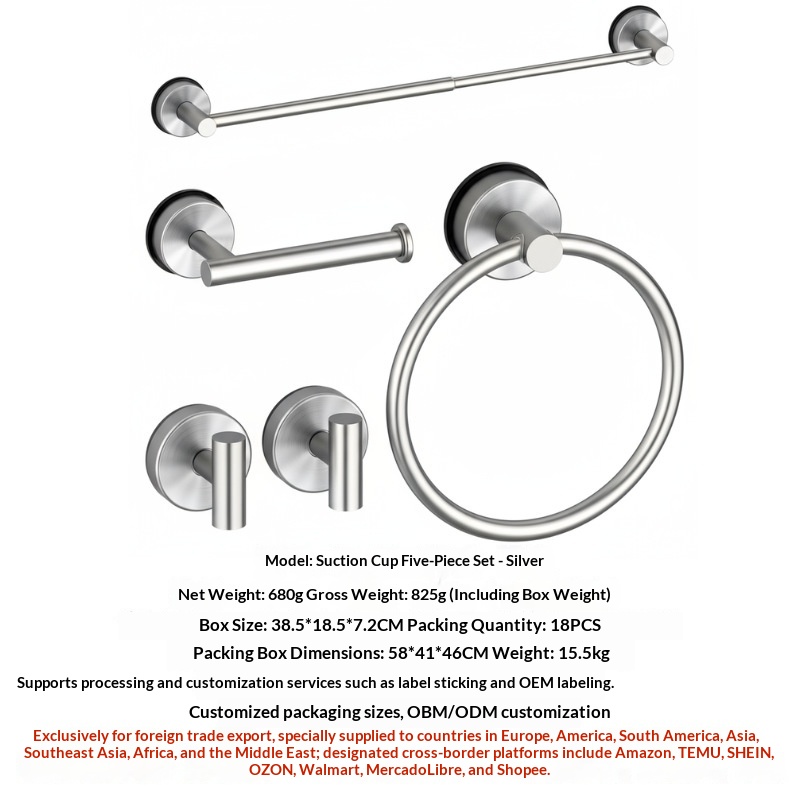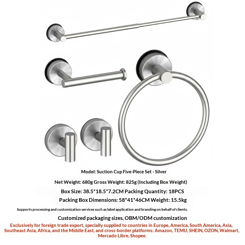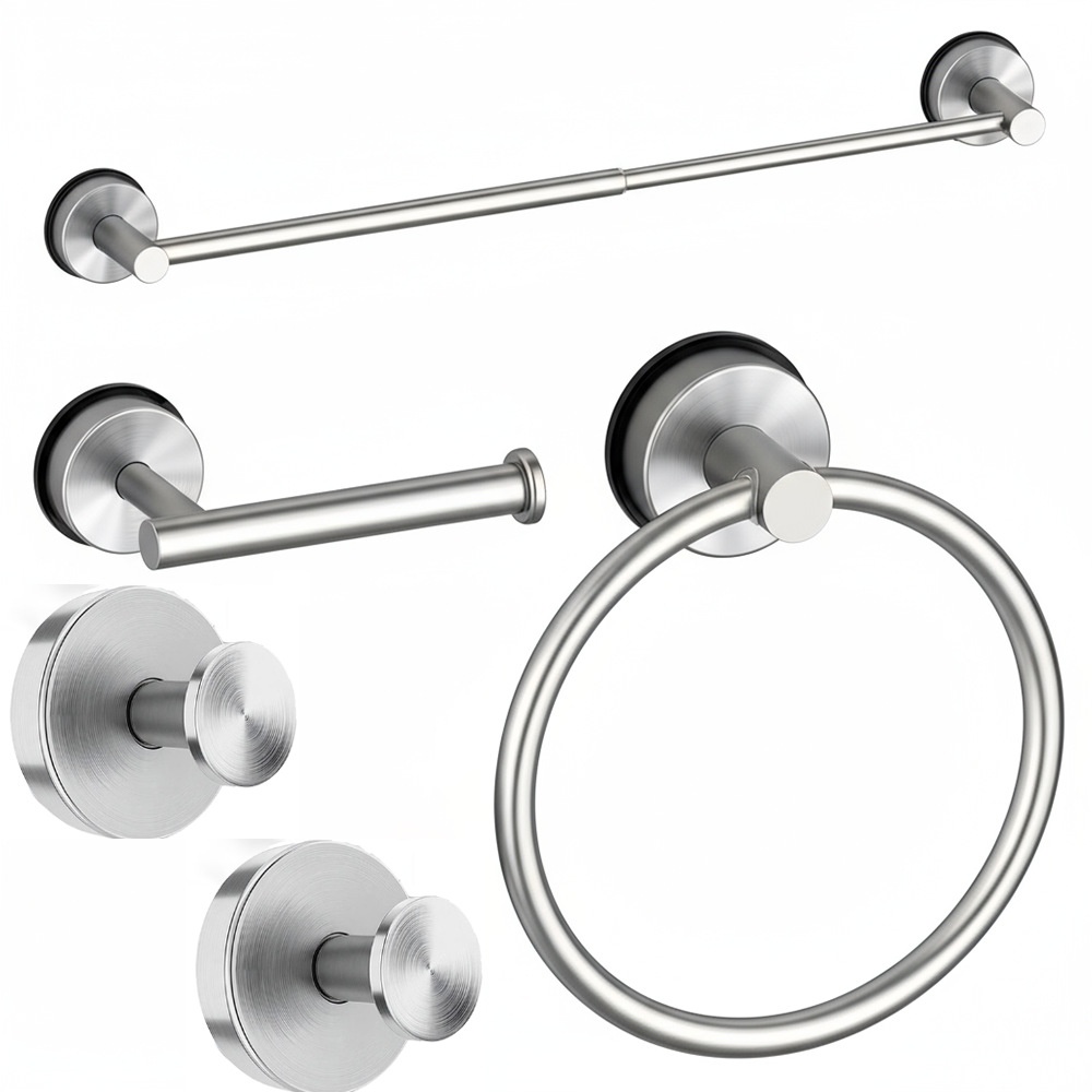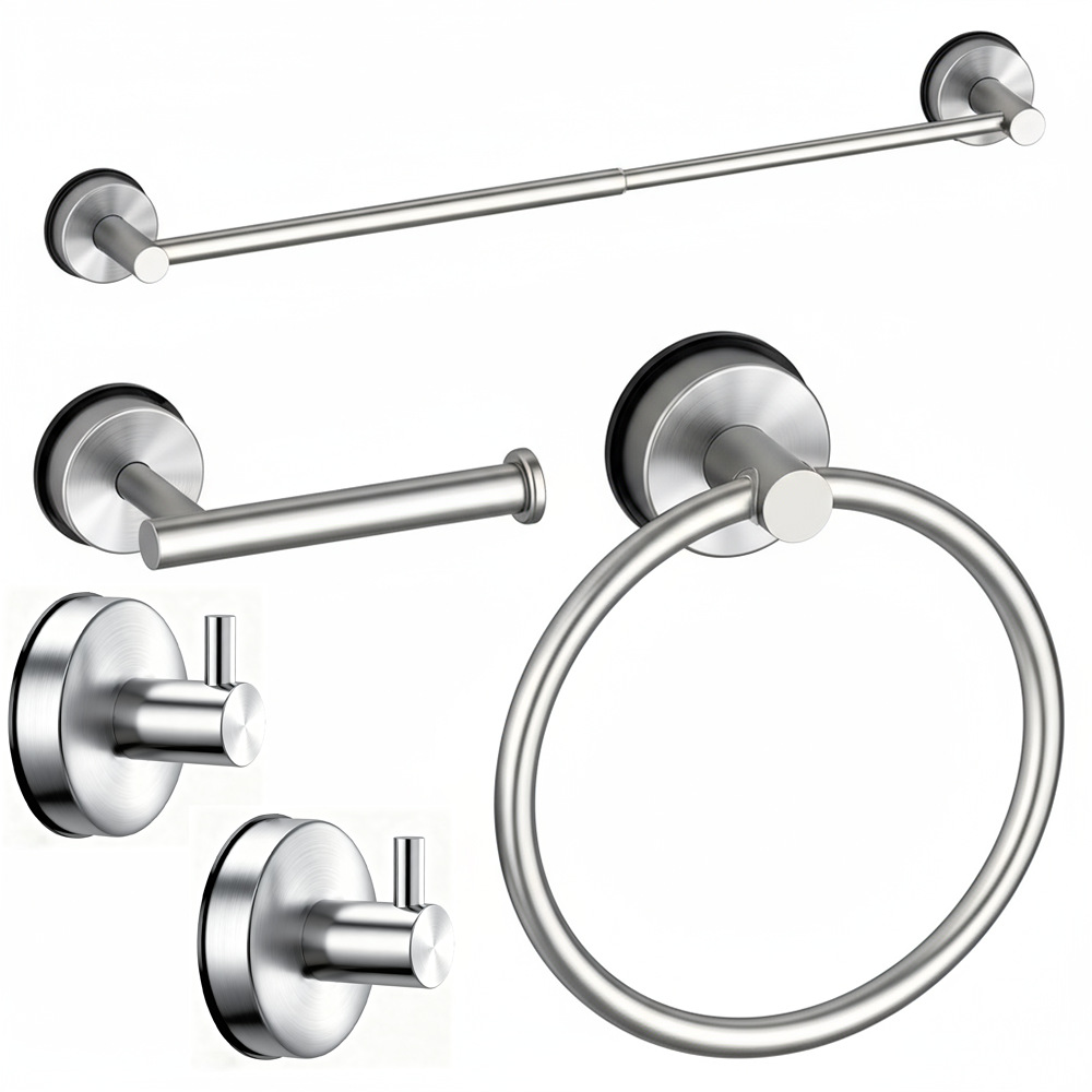 Stainless Steel Suction Cup Telescopic Towel Rack, 5-Piece Set