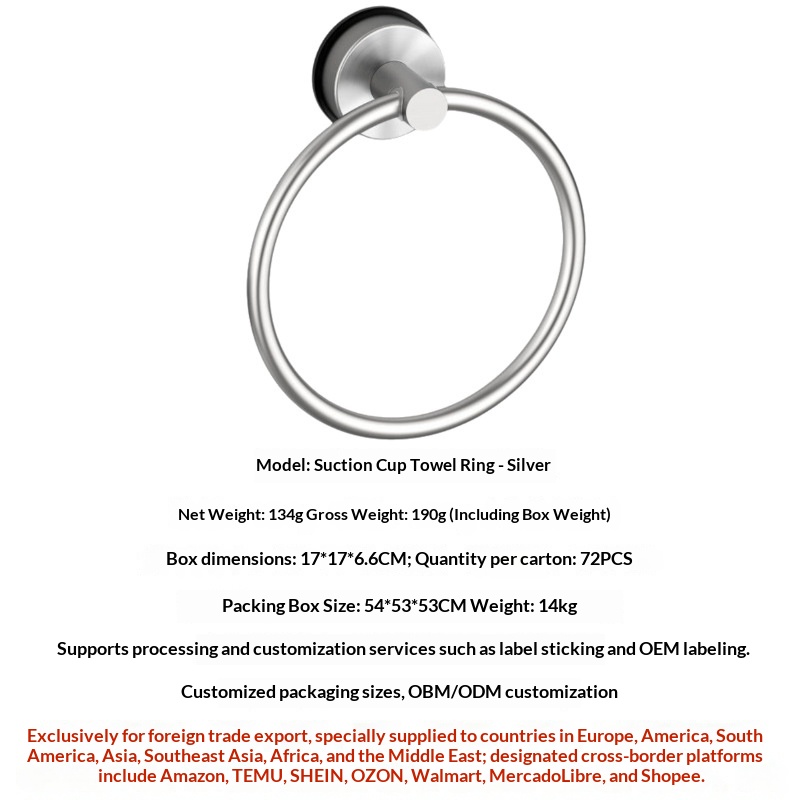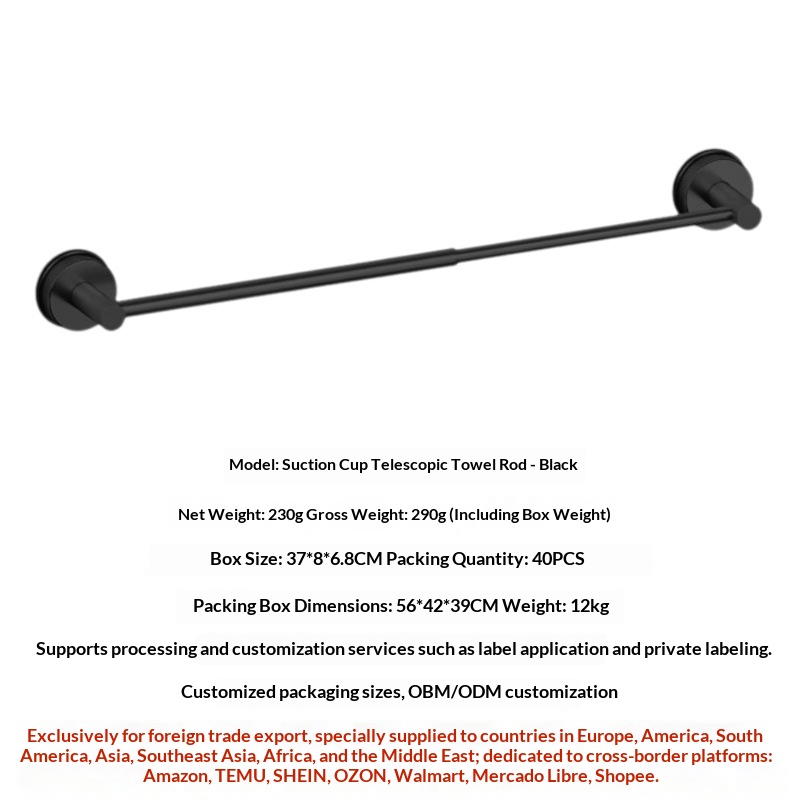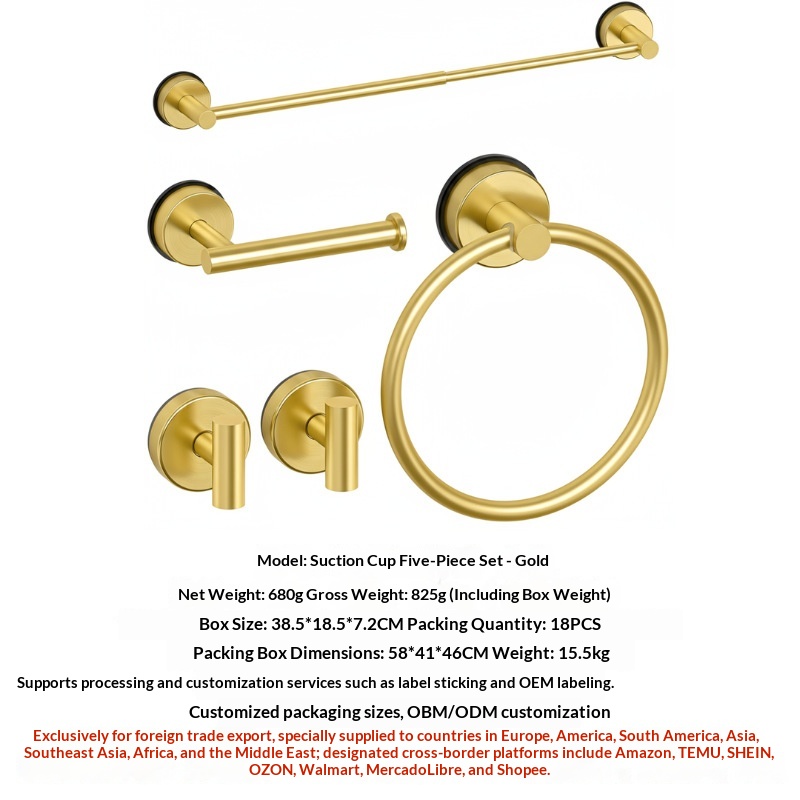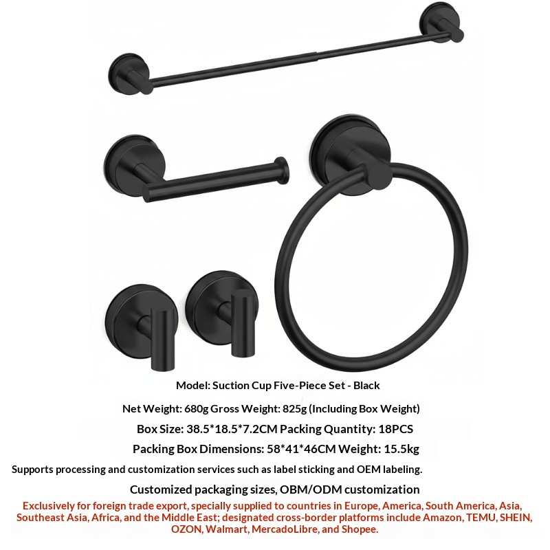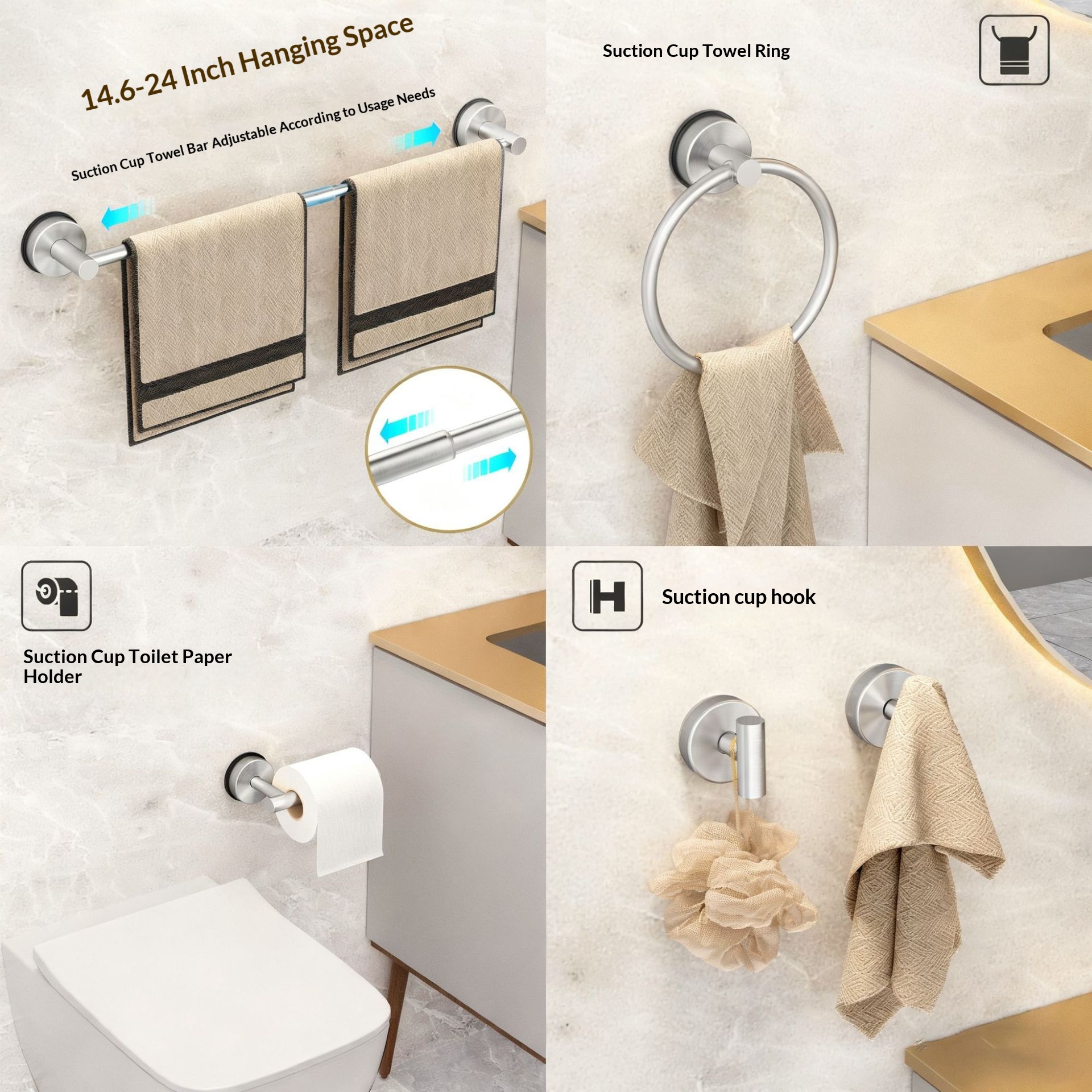 Stainless Steel Suction Cup Telescopic Towel Rack, 5-Piece Set