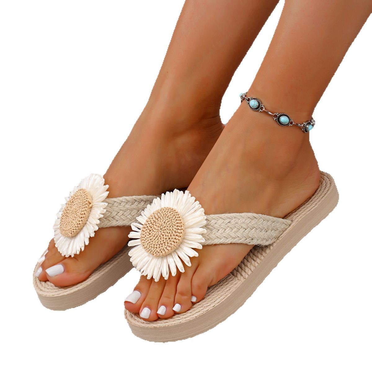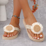 Straw-soled Outdoor Floral Flip-flops Beach Sandals