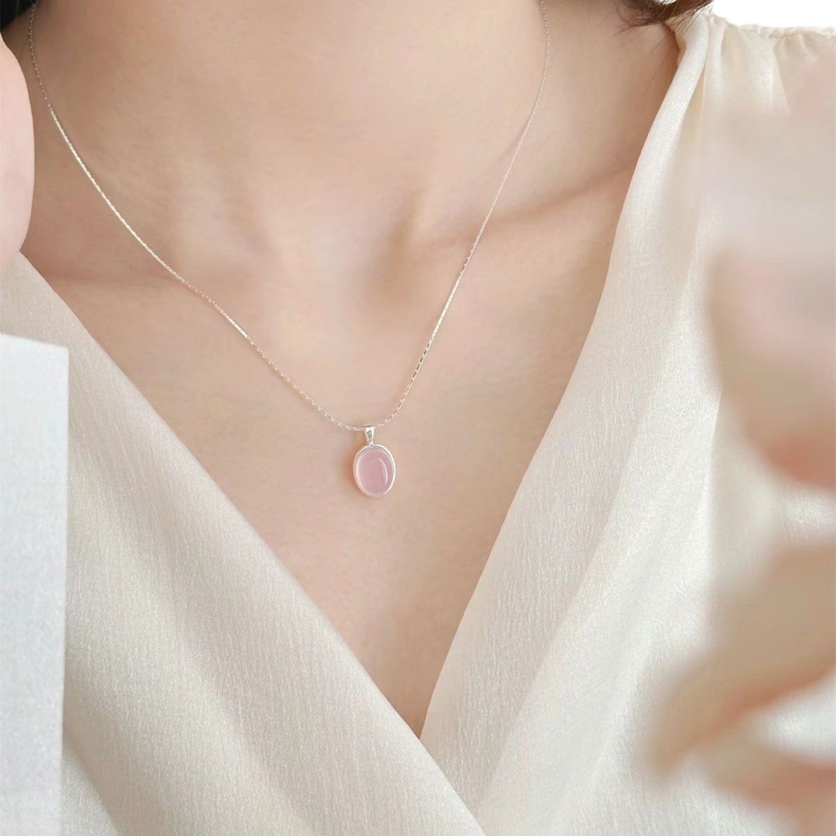 Strawberry Quartz Crystal Necklace Womens Pendant Collarbone