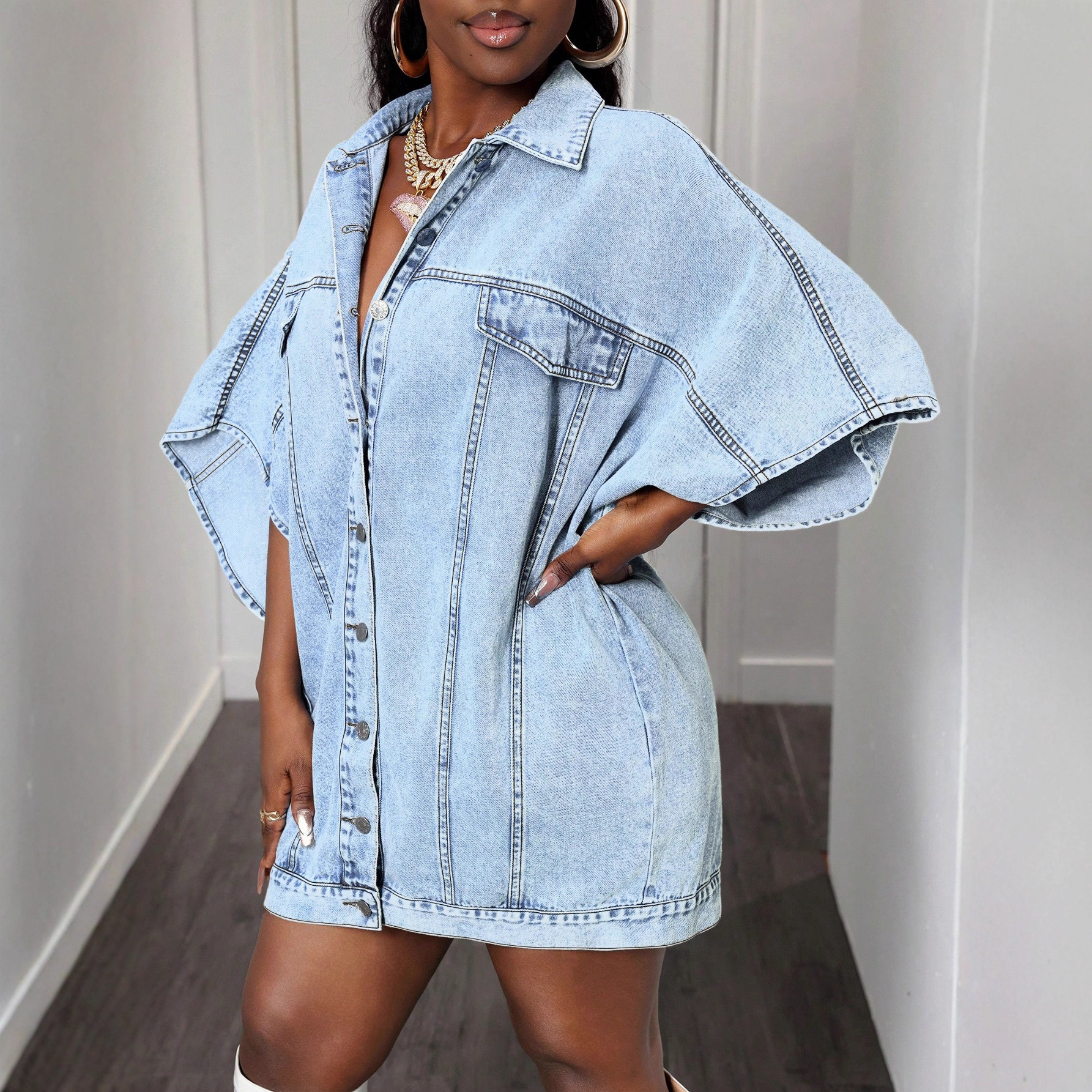Be the first to review “Street Style Sleeveless Shawl Loose Denim Jacket”
