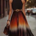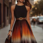 Stylish And Elegant Sleeveless Womens Pleated A-line Dress With A Gradient Hem
