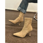 Stylish Mid-calf Suede Stretch High Heels With A Thin Heel That Flatters The Legs